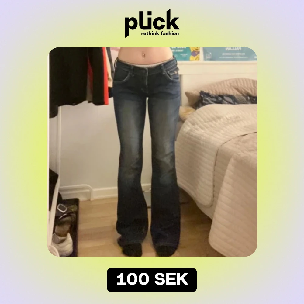 bootcut vintage hm jeans, köpta second hand. Ngl ganska slitna längst ner men annars fina, så pris kan diskuteras. Jag är 156cm och brukar bära S. Skriv för fler bilder eller mått🥰