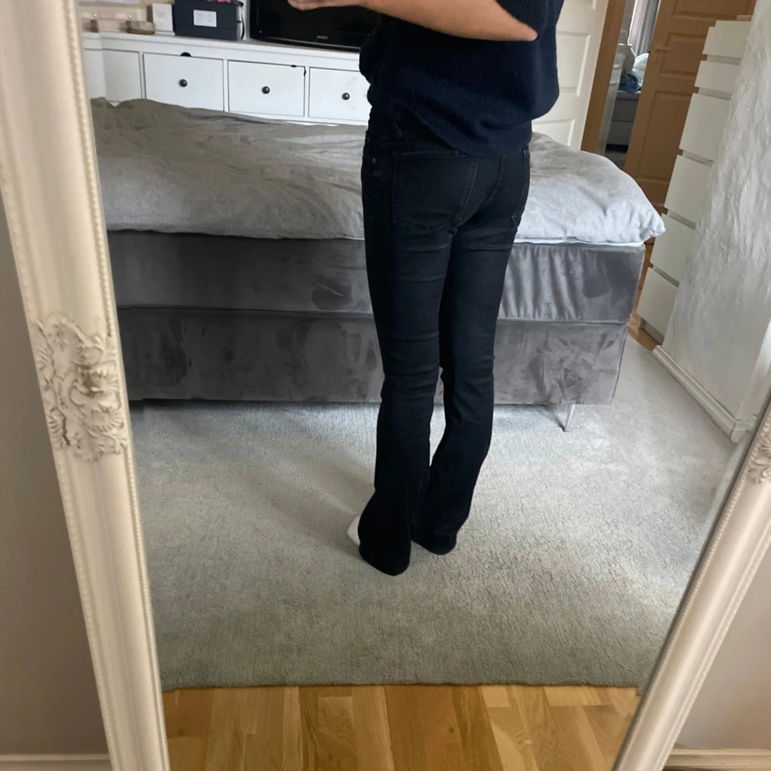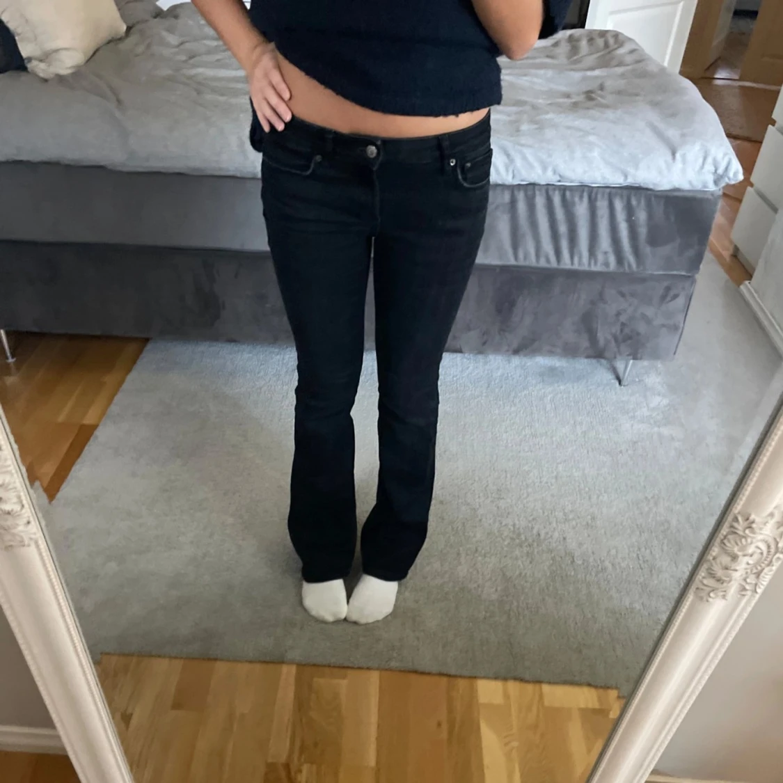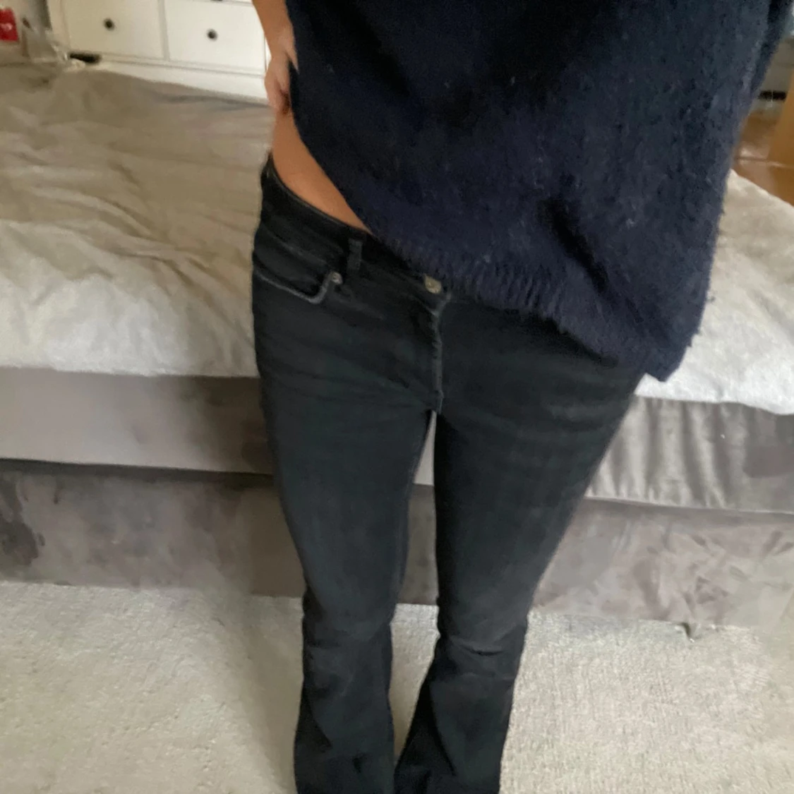 Svarta bootcut jeans från zara, stl 34. De är lågmidjade och så snygga! De har blivit mer gråa än på bilderna pga tvätten men fortfarande lika snygga 💖kom med prisförslag, kan sälja billigare vid snabbt köp