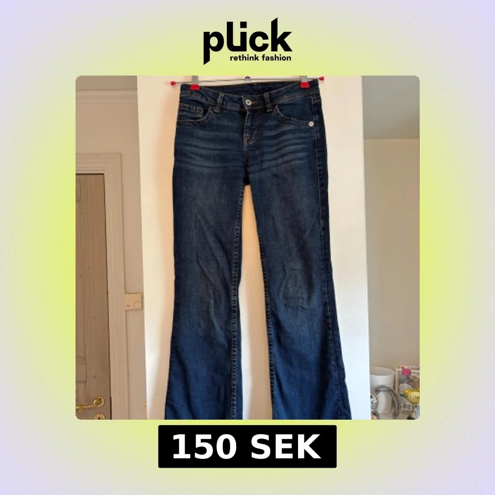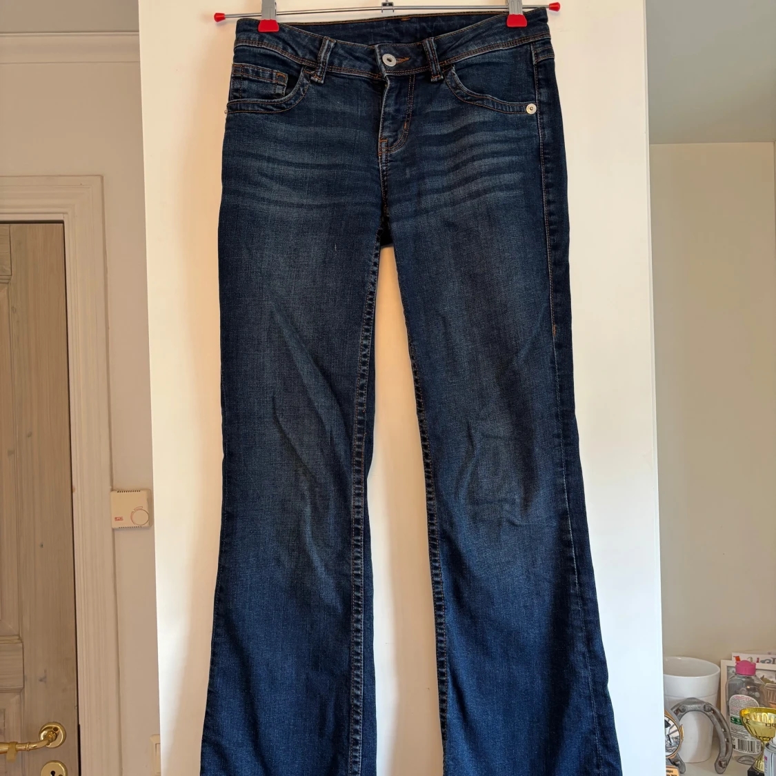 Snygga mörkblå bootcut jeans med låg midja. använda men i fint skick.