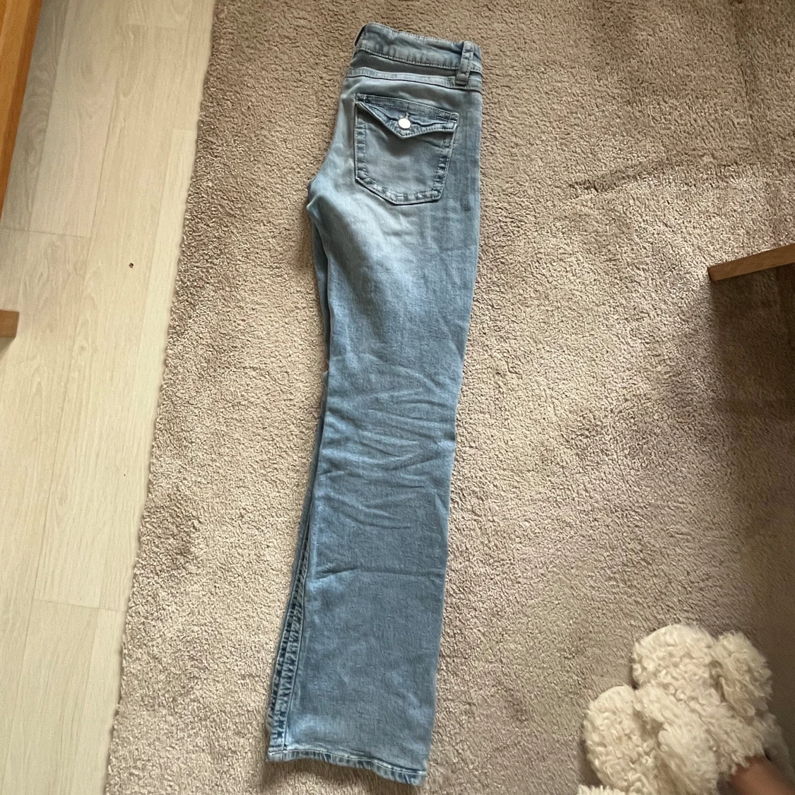 Säljer mina lågmidjade bootcut jeans från ginas barnavdelning i storlek 158🩷 På fjärde bilden kan du se att det är påväg att bli ett hål vid fickan, därav dett billiga priset!😊
