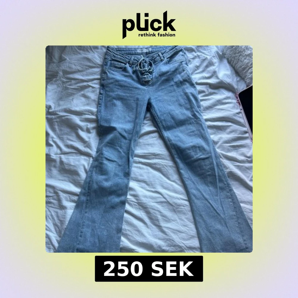 Supersöta bootcut jeans med knytdetaljer framtill, de är relativt lång i modellen