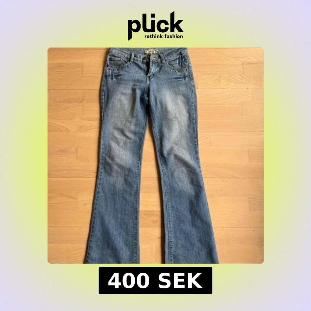Säljer nu mina skitsnygga vintage jeans från Onado med coola nitar vid fickorna. De har en bootcut-stil och en klassisk femficksdesign. Midjemått: 37, total längd: 105, 25cm vida i benen! 💗 skriv om du har frågor! Storlek S passar även M, då jeansen är stretchiga.