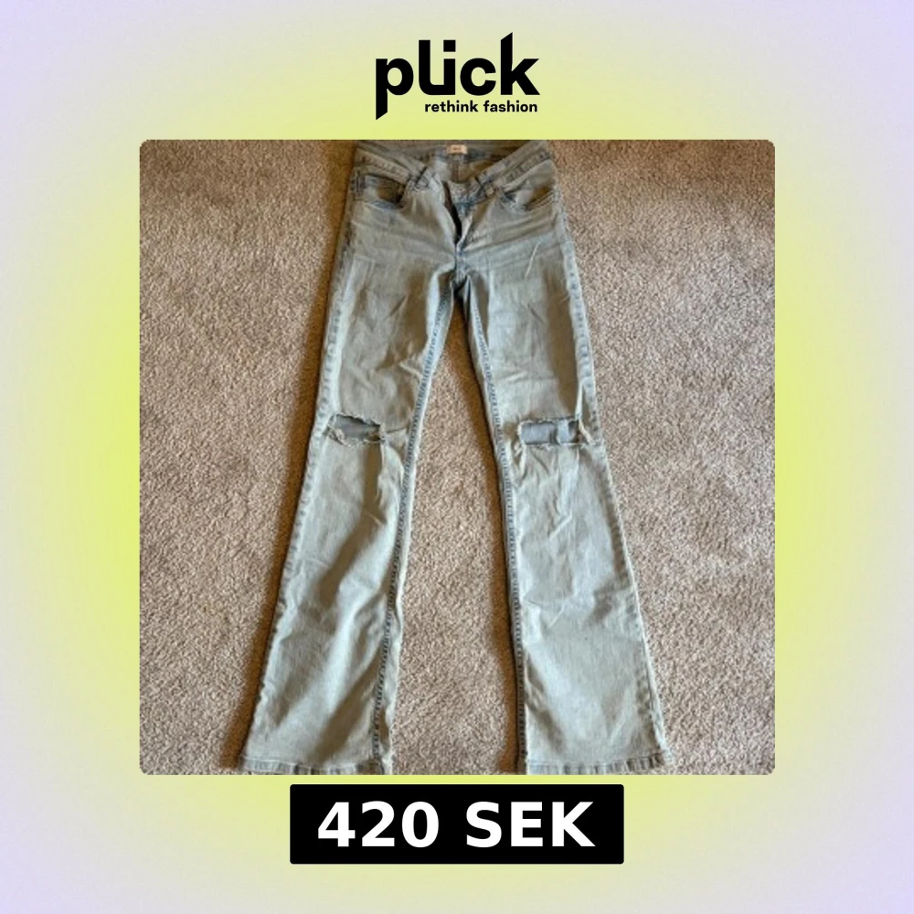 Snygga bootcut från Nelly med slitningar. Lite defekter längst ner (se bild) så de är för långa för mig men inget märkbart. Pris kan diskuteras
