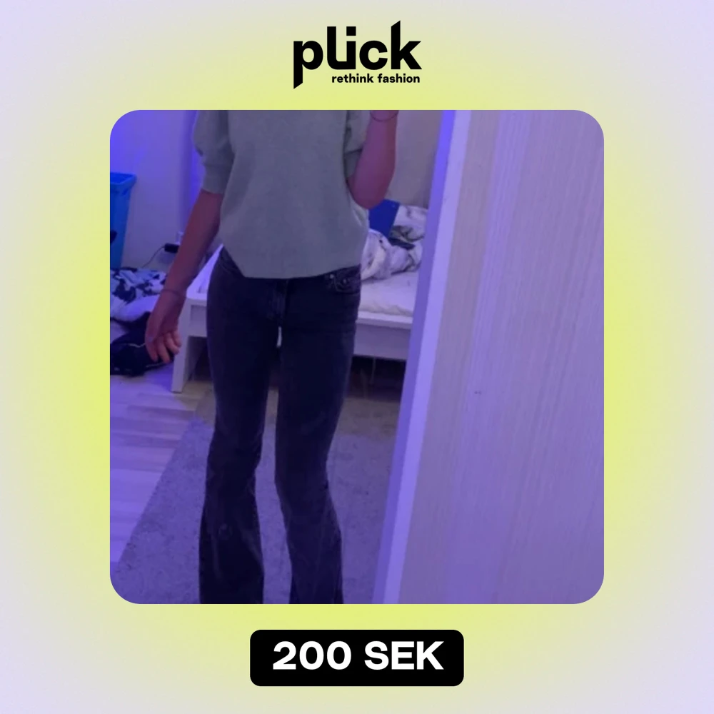 Bootcut jeans från Gina Tricot💗 Storlek 32, jag är 160 som referens🫶🏼 Lite slitna längst ner då de är lite långa men inget man tänker på. Har fler bilde om det önskas