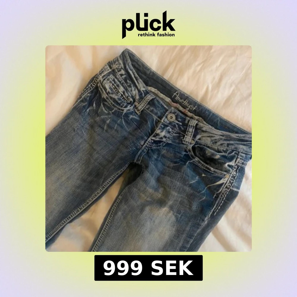 Snygga blå bootcut jeans med låg midja står storlek 0 vilket är som xs/s osäker på om jag vill sälja därför priset! Midjemåttet tvärsöver:36cm (dom är stretchiga) inerbenslängden:81cm jag är 165