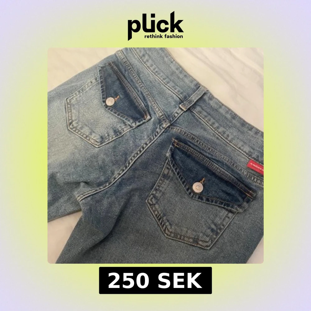 har en klassisk femficksdesign och dubbla knappar i midjan. Lite slitna längst ner. Storlek S. Har liten fläck på knät. Annars är resten i bra skick.