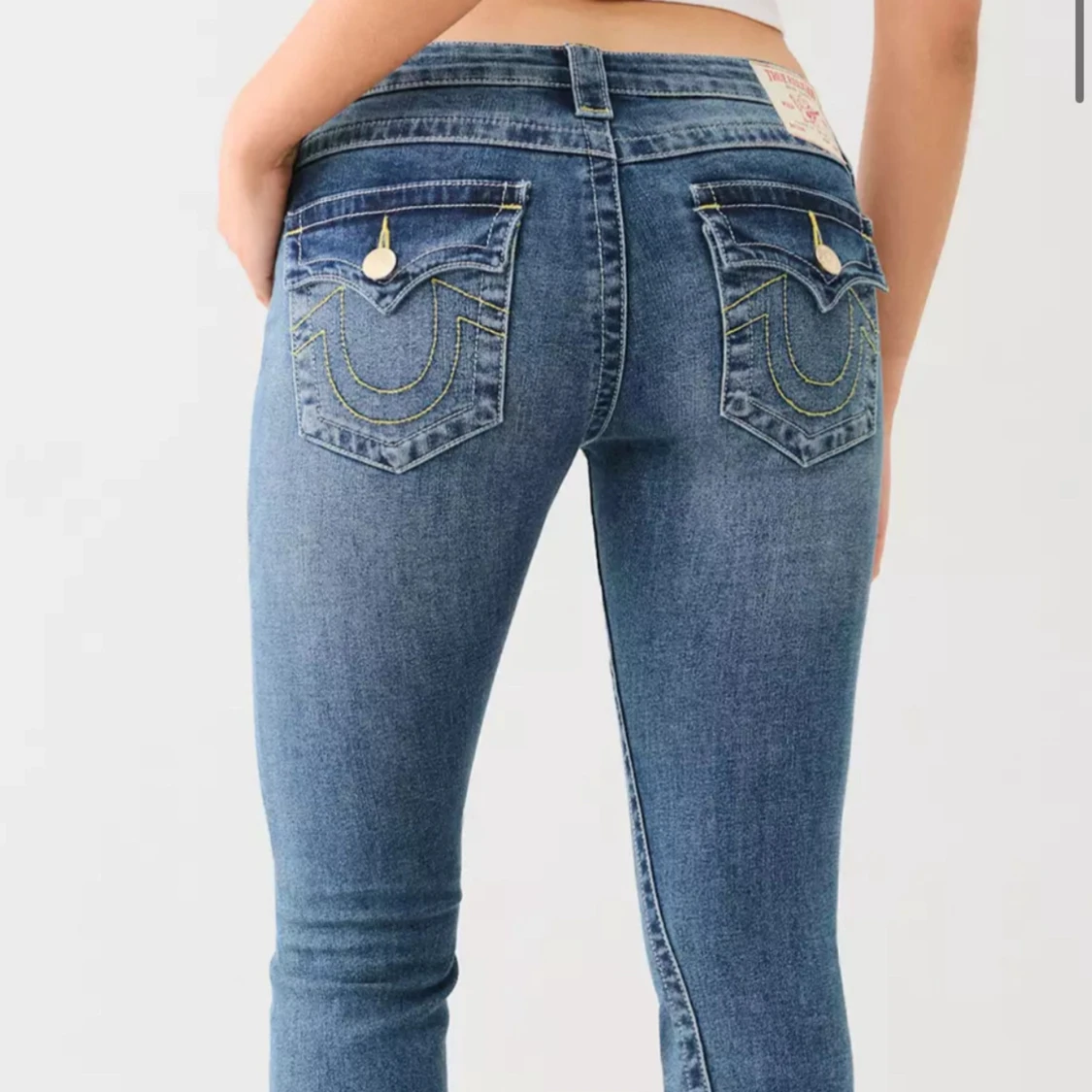 Säljer ett par mörkblå jeans från True Religion med bootcut passform och lågmidjade. I storlek 25 men klippta för att passa mig som är 162, knappt använda💕Pris kan diskuteras vid snabb affär!