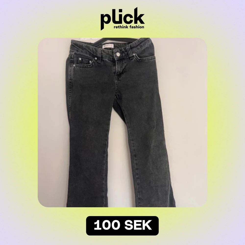Säljer dessa svarta bootcut jeans med låg midja från Gina Tricot då jag inte använt dom. De har knappar på baksidan