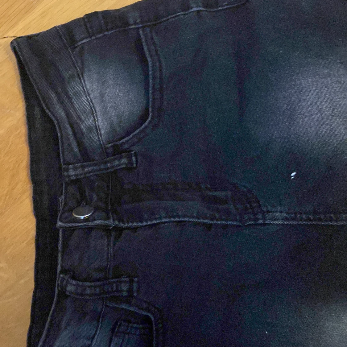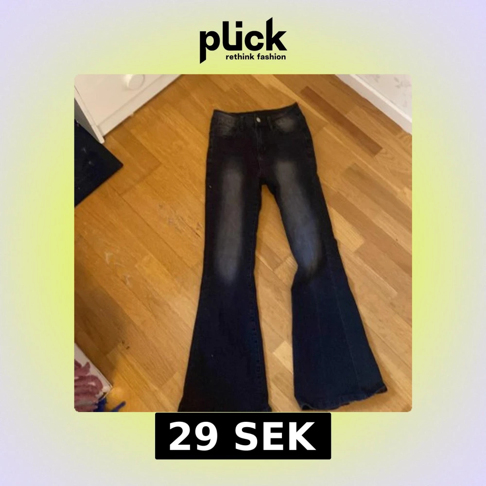 Snygga svarta bootcut jeans med en klassisk femficksdesign. De har en lätt tvättad look och knappar i midjan. Perfekta för en stilren och avslappnad look. Super snyggga från temu ❤️