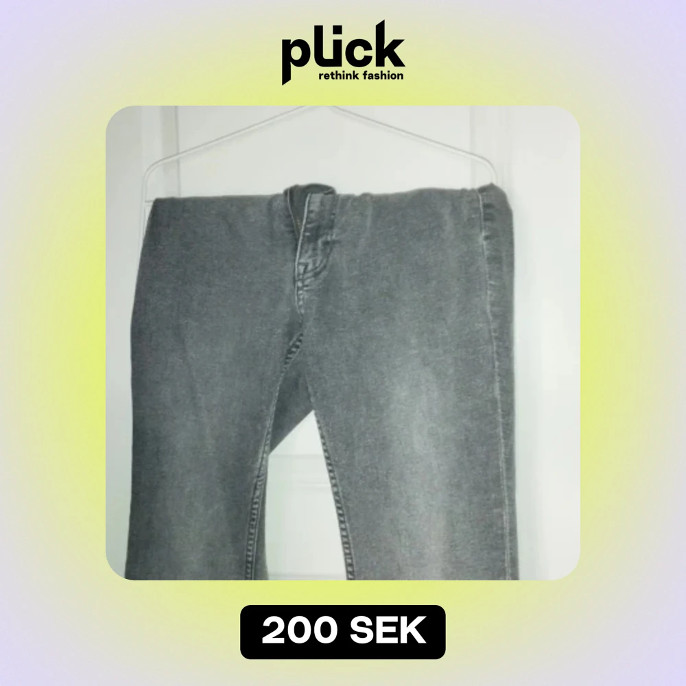 Snygga low waist,Grå,Bootcut jeans från h&m i storlek 42. Använt fåtal gånger och är lite trasig i högra benen som du ser i bild 3. Skriv om du är intresserad eller har några fler frågor ✨