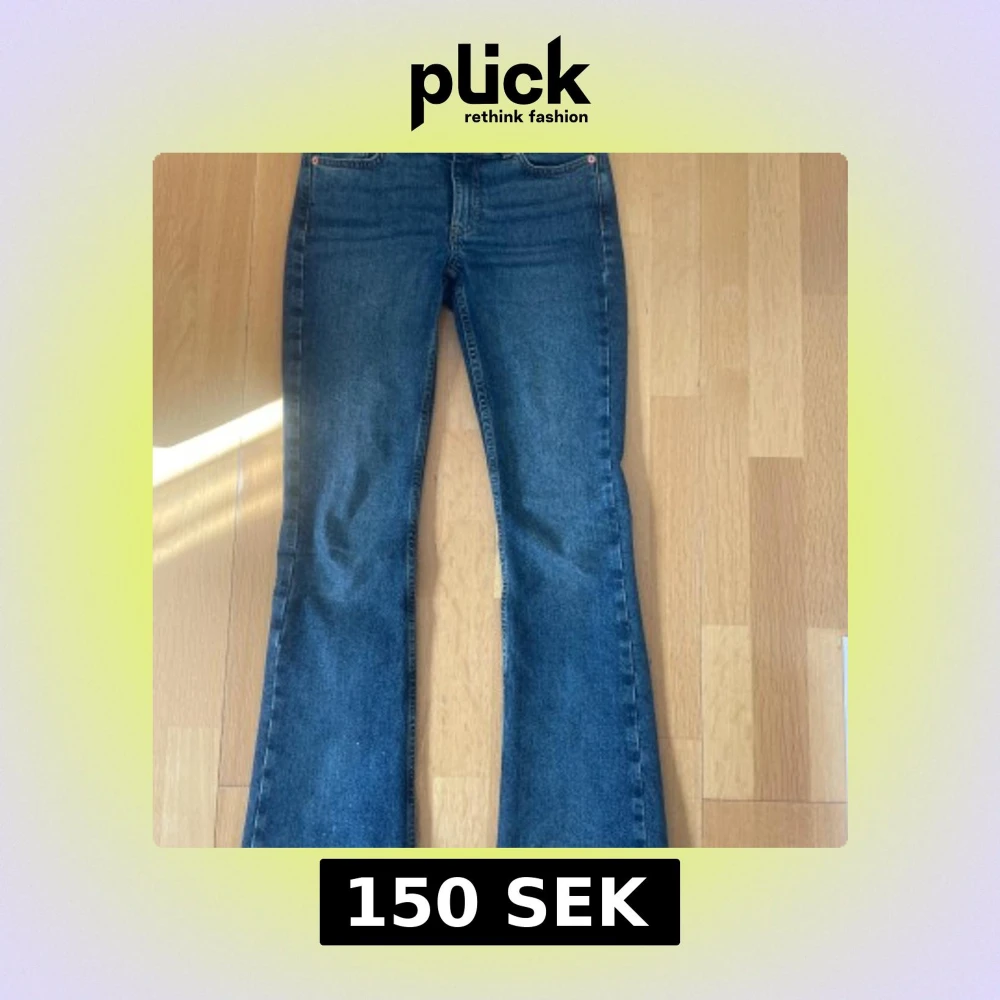 Snygga blå bootcut jeans från Junkyard i storlek XS. Jeansen är näst intill helt nya och är tillverkade i denim med en lätt tvättad look.