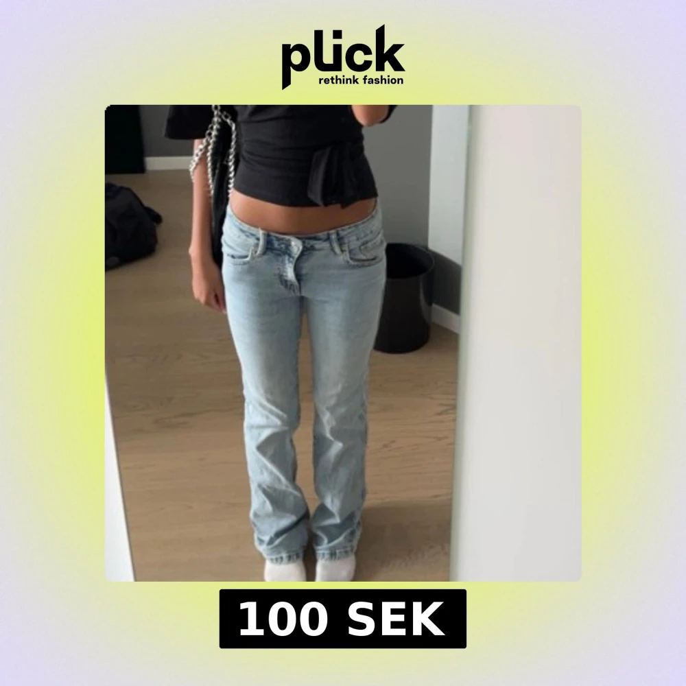 Säljer ett par ljusblå jeans med bootcut-stil från lager 157💗 de har ett hål vid fickan som syns när man har på sig dem