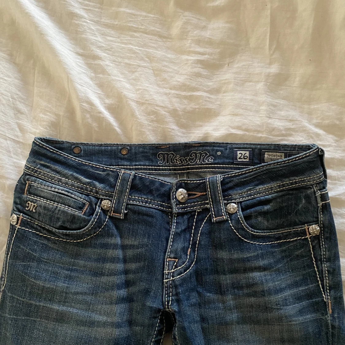 Säljer dessa ursnygga lågmidjade bootcut miss me jeans i storlek 26. Köpta på plick, och säljer pga att de sällan kommer till användning. Midjemått:73cm innerbenslängd:78cm