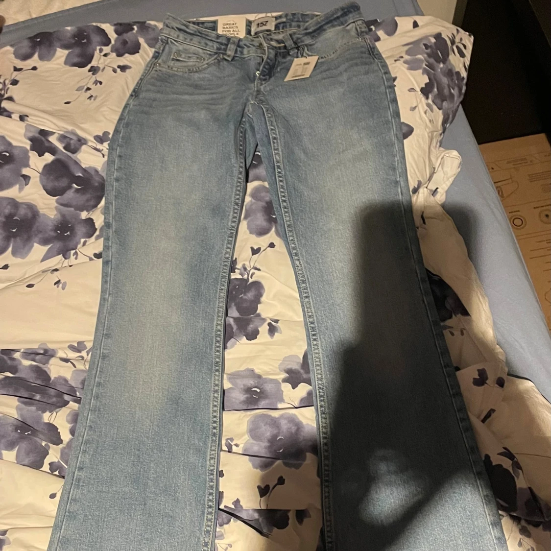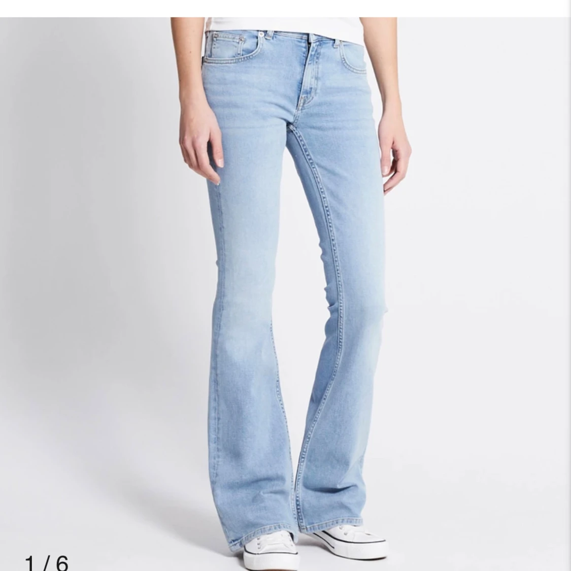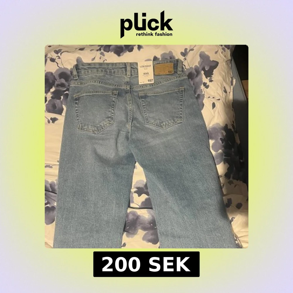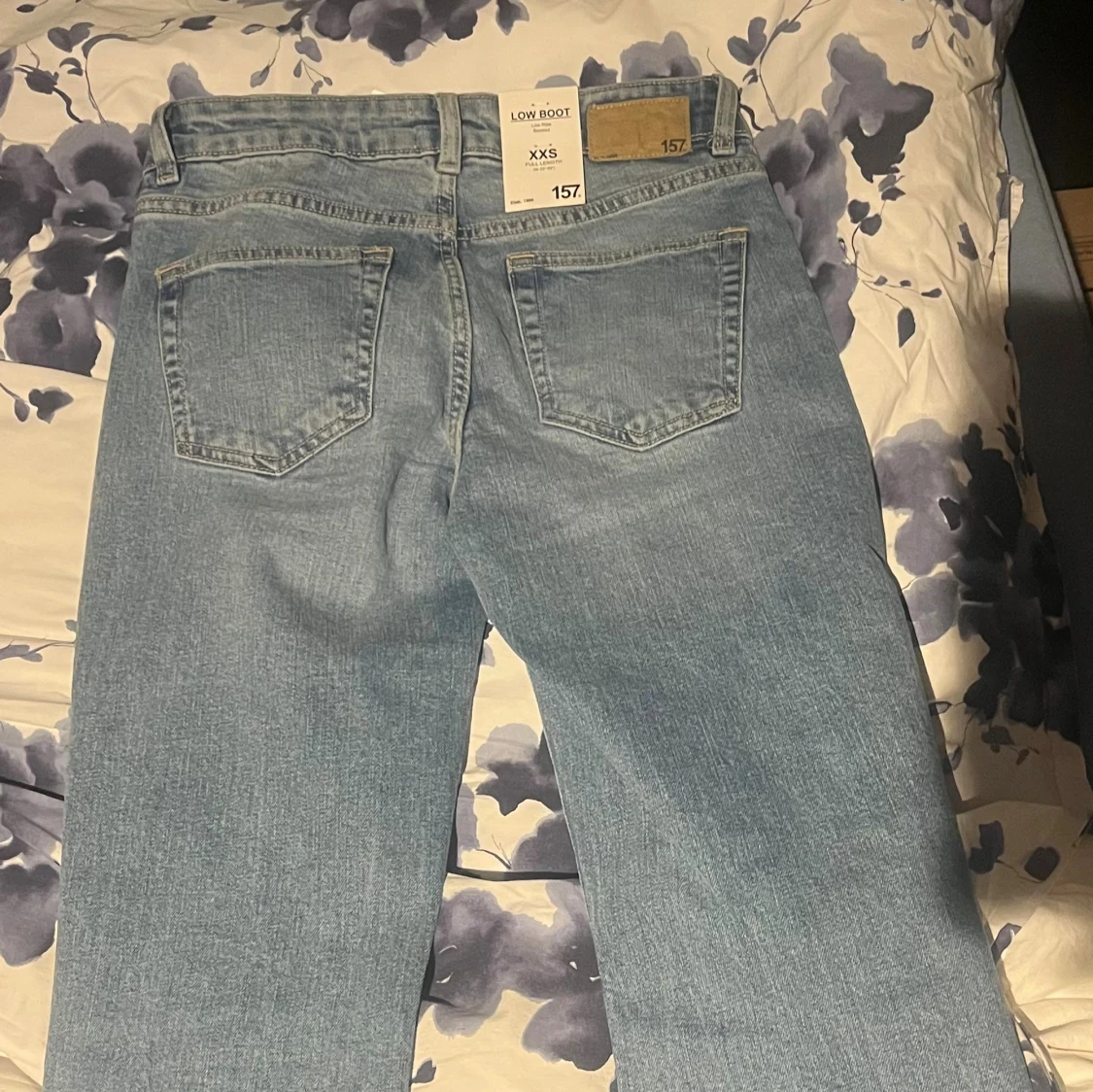 Säljer ett par ljusblå Lågmidjade bootcut jeans från lager 157 i storlek XXS. Helt nya med lappen på endast testade men säljer då dom var för små för mig, köpte för 400kr🥰