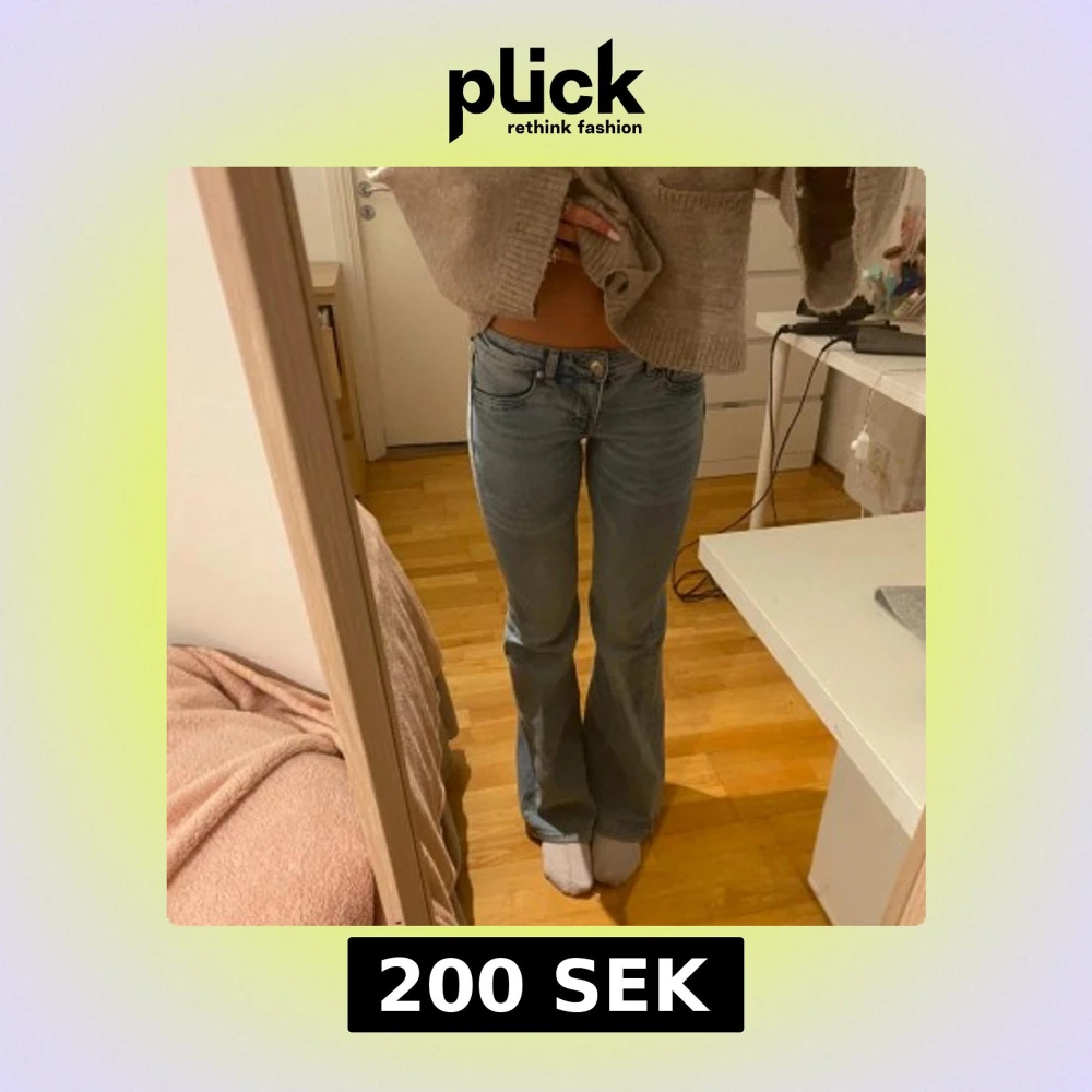 Säljer ett par ljusblå bootcut jeans med låg midja. I storlek 36, nästan aldrig använda💕