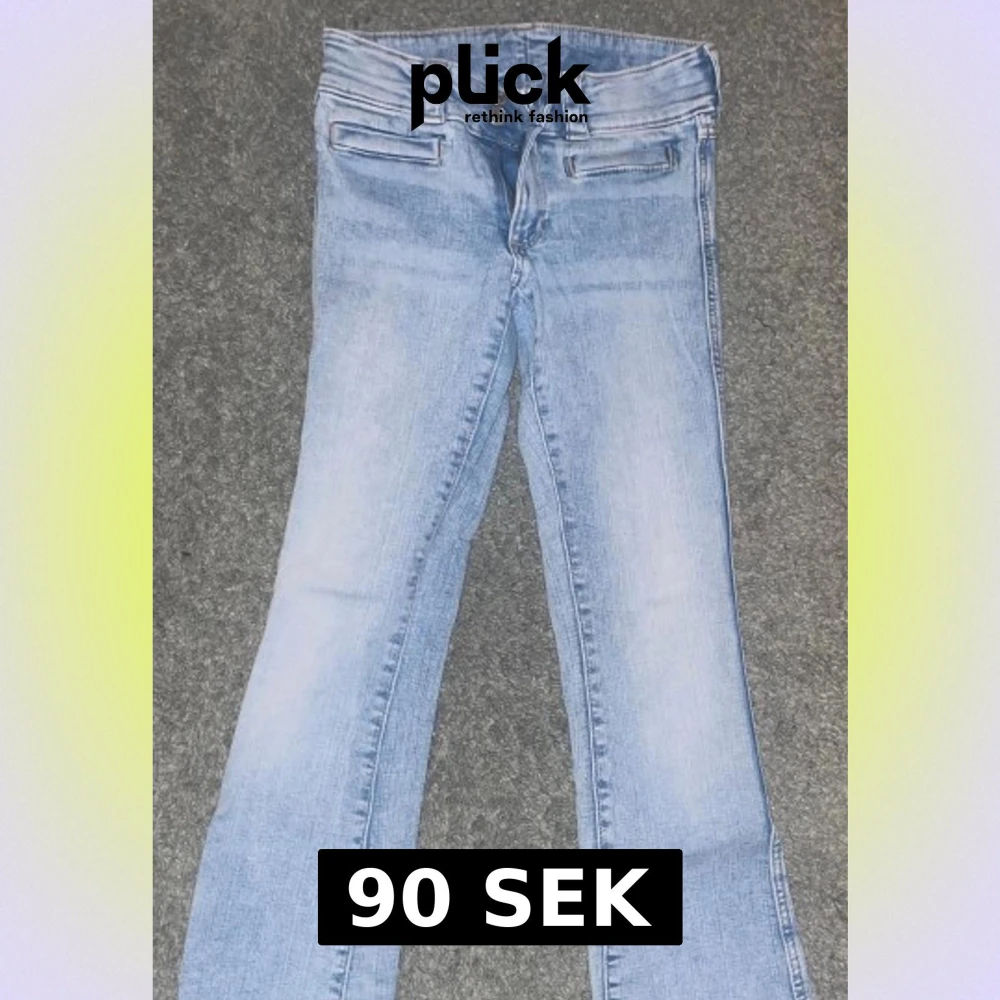 Snygga ljusblå jeans med bootcut passform och låg midja. Jeansen har klassiska fickor framtill och bälteshällor. Materialet är jeans med en lätt tvättad look som ger en fräsch vibe. Perfekta för dig som gillar en avslappnad stil. Säljer pga av förkorta. Skulle passa någon mellan 145-160 cm!