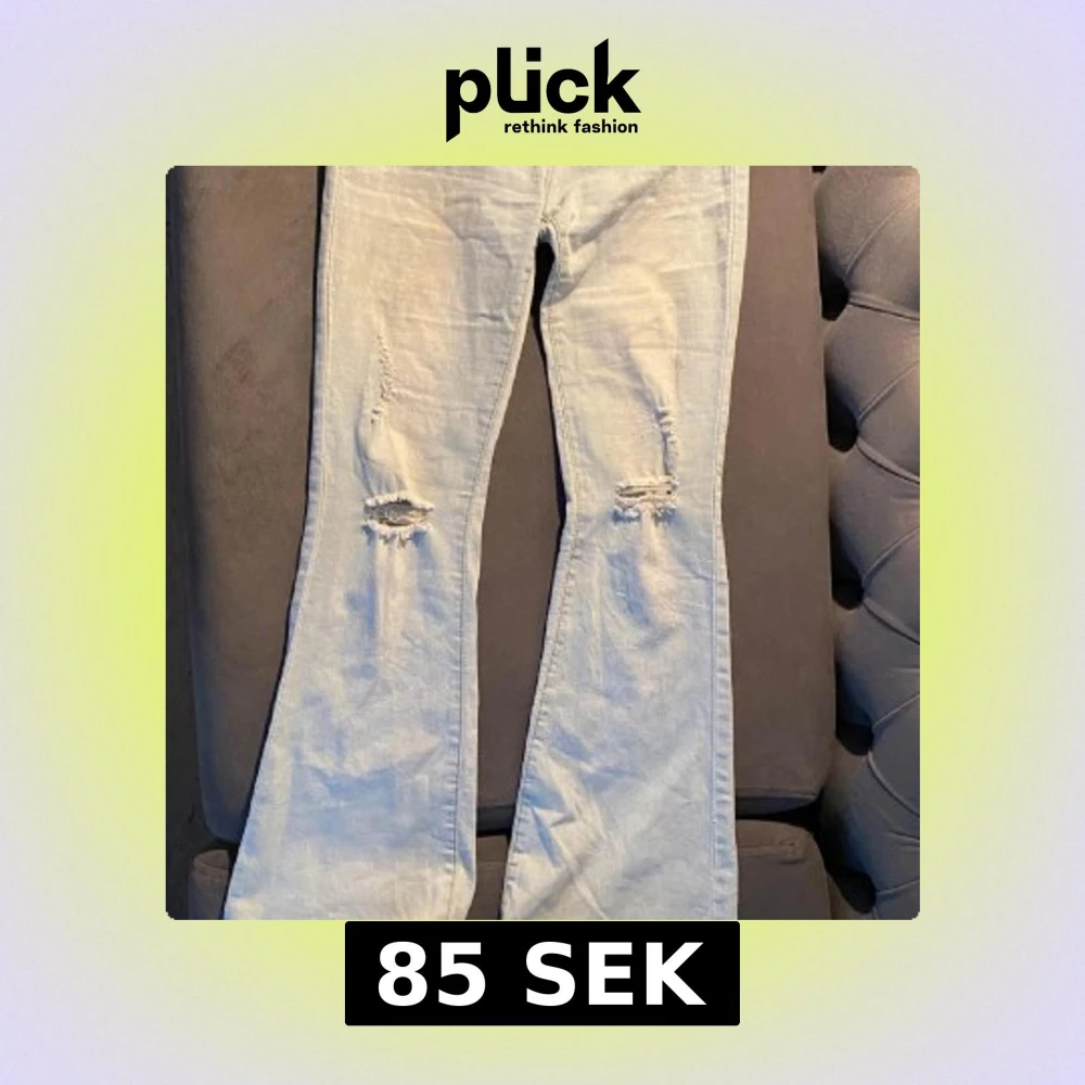 Såå snygga jeans med hål! Dom passar perfekt för mig som är 165, sjukt snygga och har en ganska stretchig material! Köpte dem på plick.