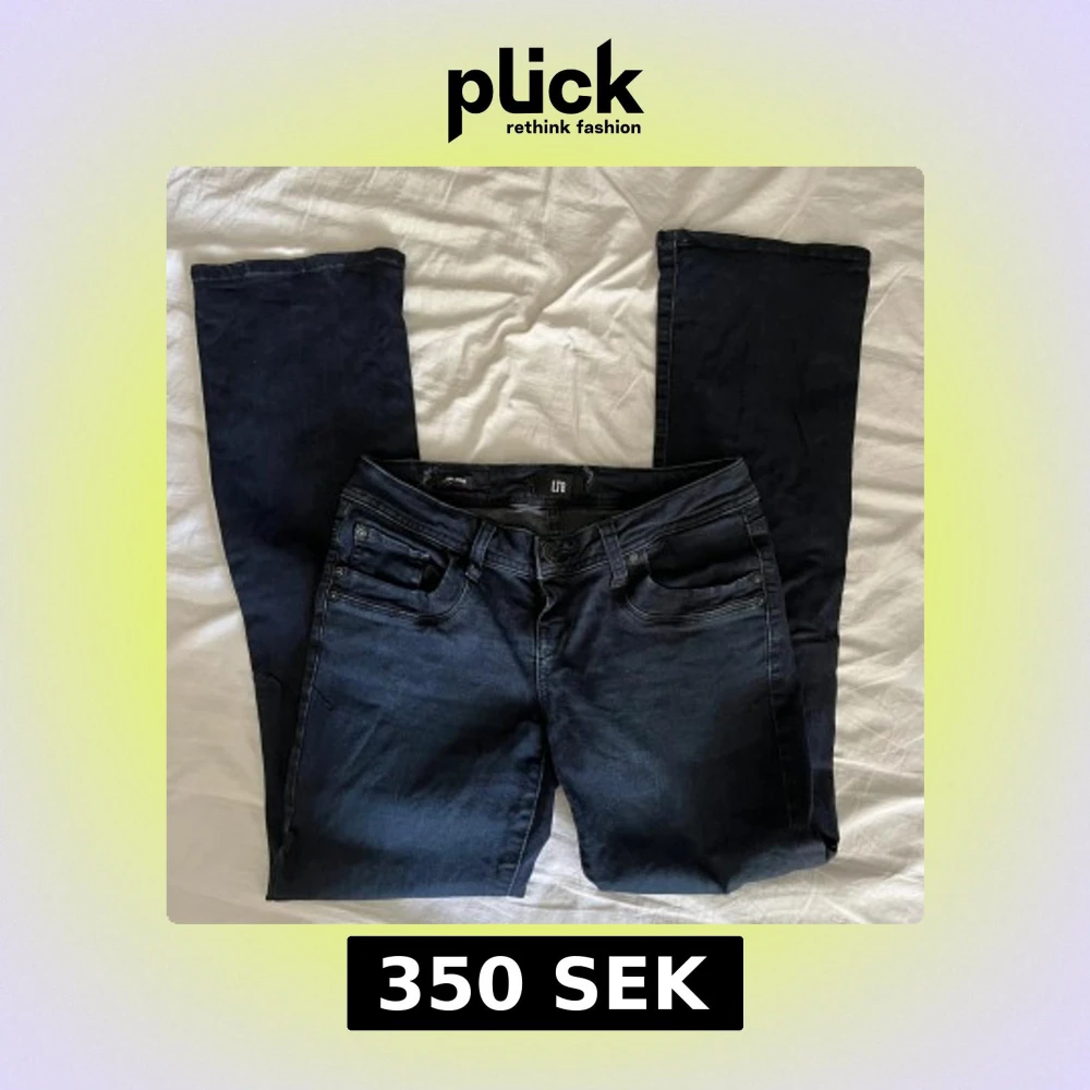 Snygga jeans från LTB. Jeansen har låg midja och bootcut. Storlek 26/30. Har haft snöre i midjan för att kunna spänna åt de och därför är det små hål på insidan av jeansen men försämrar inte jeansen på något sätt.