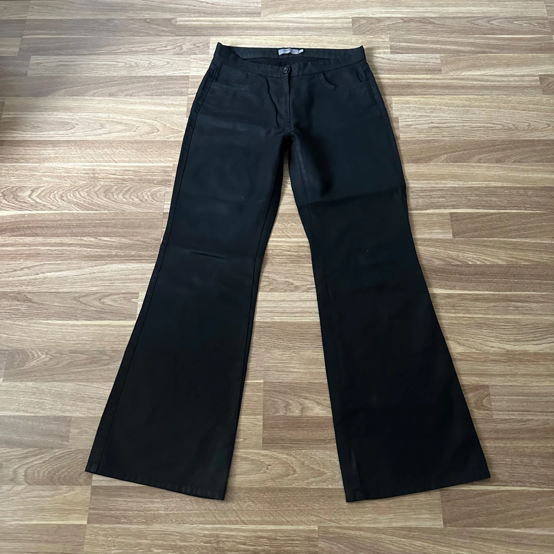 Fina low/midrise bootcut byxor! Ser lite ut som en blandning av jeans och kostymbyxor. Storlek 38. Midja: ca 82cm runt om. Innerben: ca 80cm. Jag är ca 169cm och brukar ha storlek 38 för referens. Skriv vid fler funderingar! Använd gärna köp nu😇