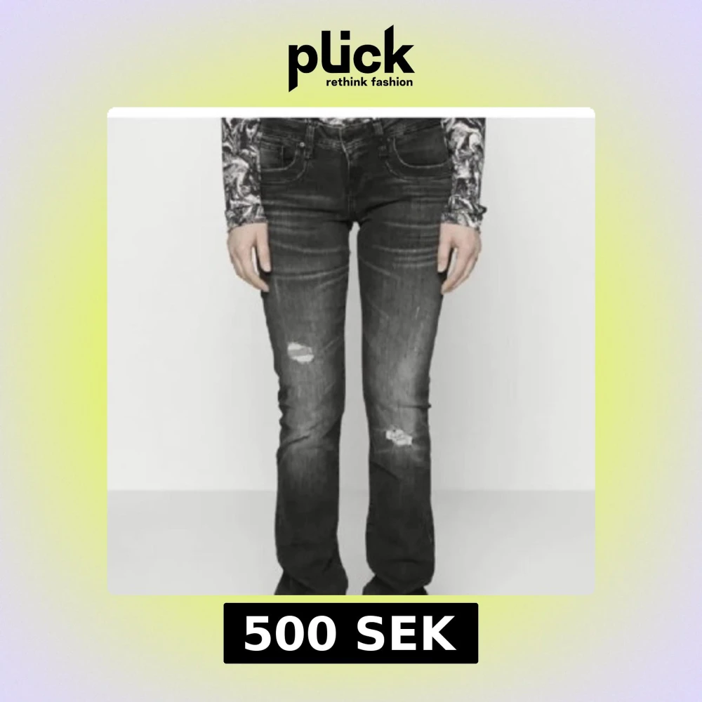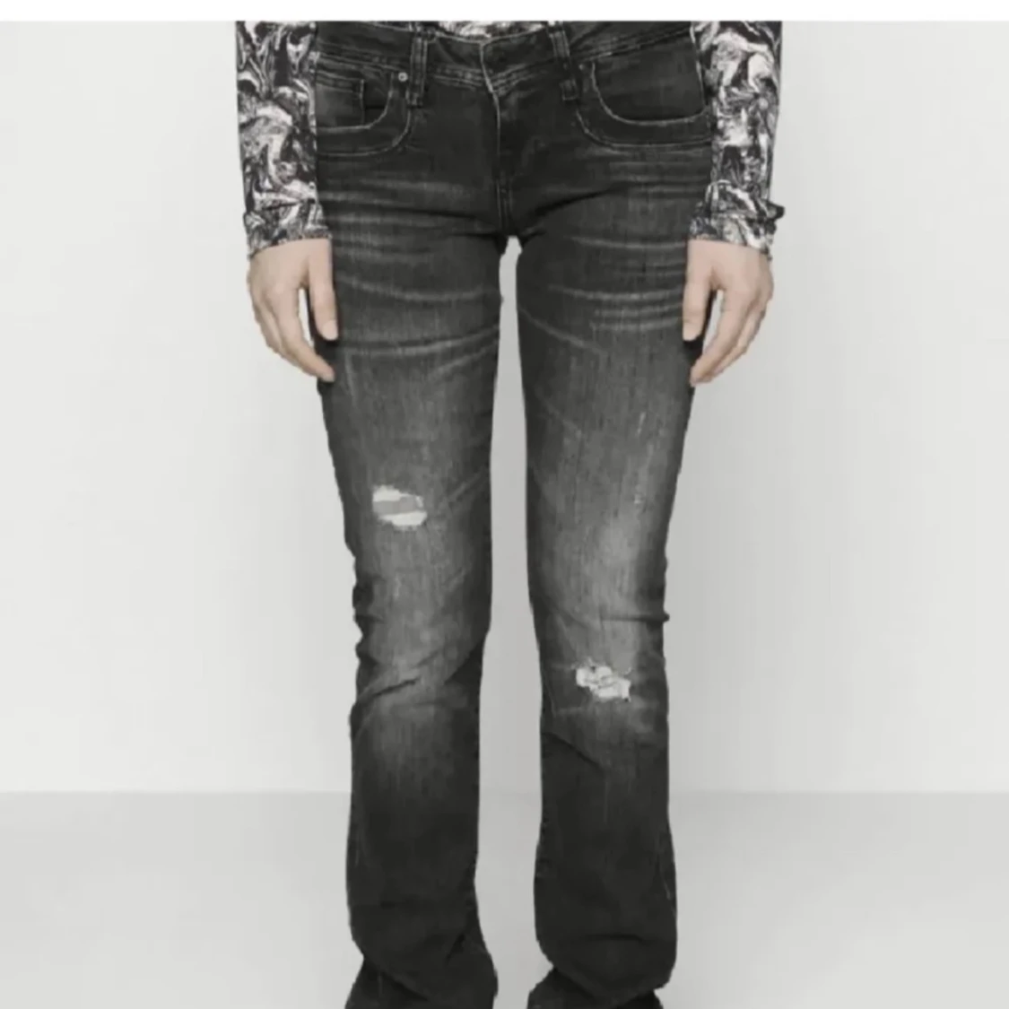 Snygga svarta jeans med bootcut passform och slitna detaljer på låren. Jeansen har klassisk femficksdesign och är tillverkade i ett robust denimtyg. Perfekta för dig som gillar en cool och avslappnad stil.