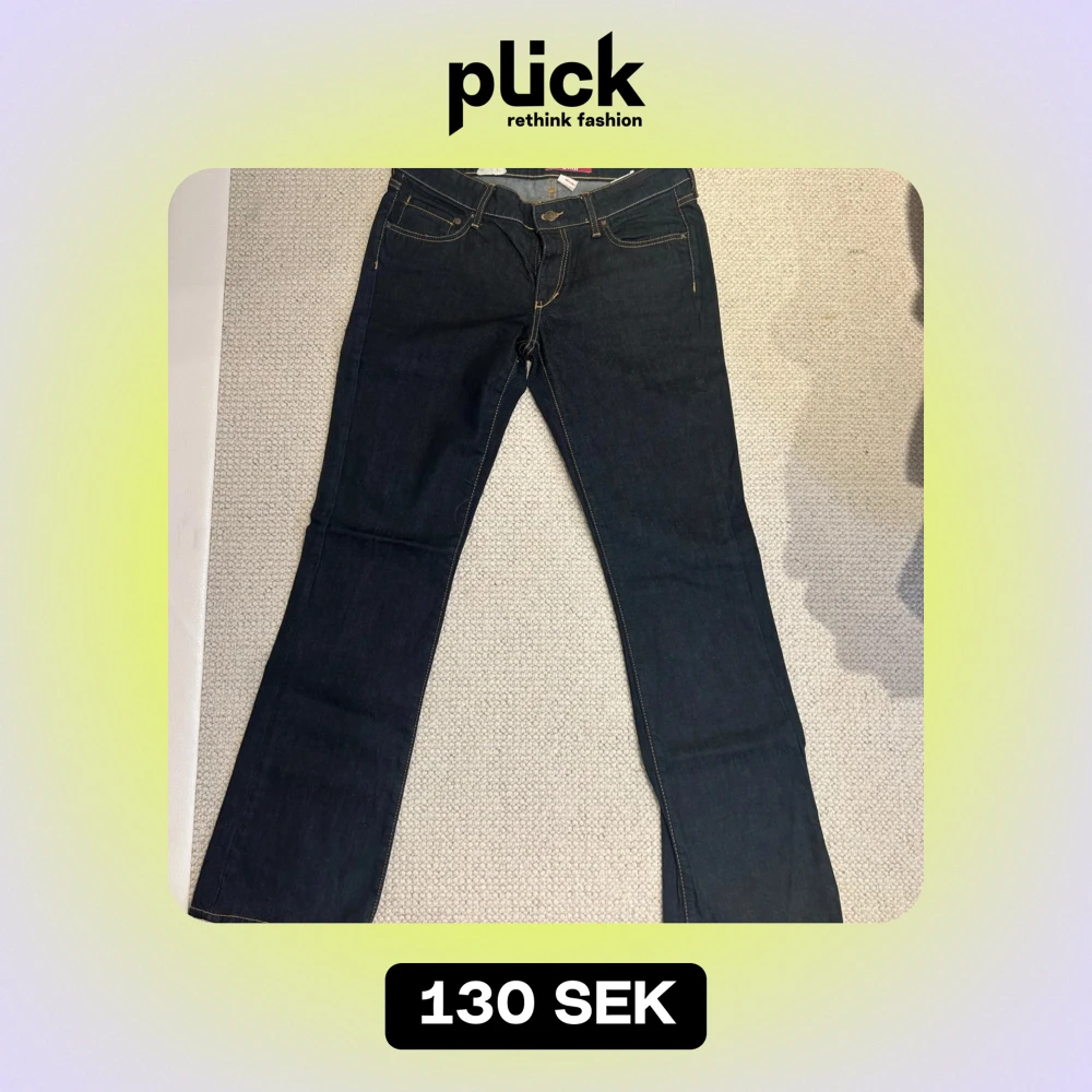 Säljer ett par mörkblå jeans från & denim i storlek 30/32. De är bootcut/flared och medelhög i midjan. De har kontrastsömmar och bakfickor med knappar. Perfekta för både vardag och fest! 🕺