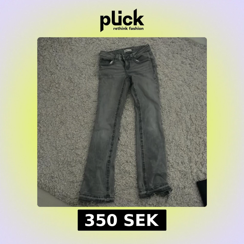 Grå lågmidjade jeans från Gina, en 36a men passar 34 lika bra, väldigt stretchiga, har sprett upp benen men det går att sy tillbaka, annars en fin detalj, nypris 499