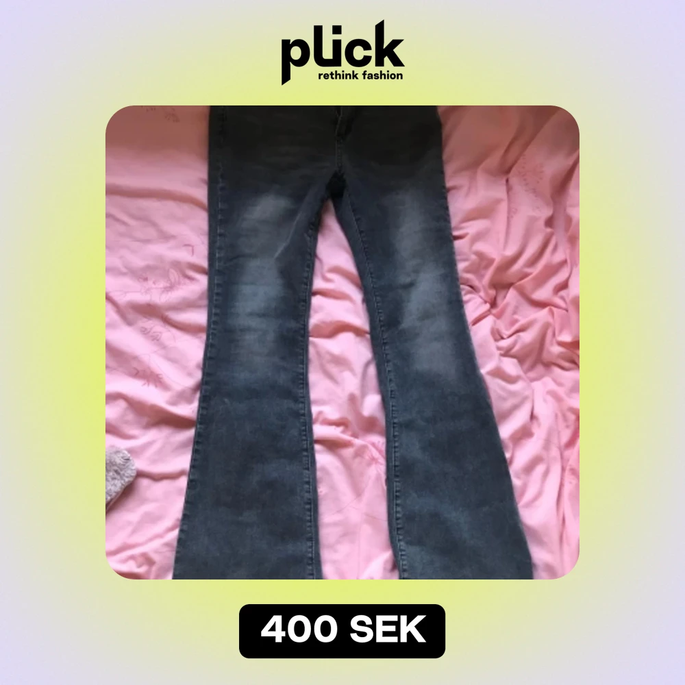 Ett par mörkblå bootcut jeans med en lätt fade. Likt ett par andra jeans jag säljer
