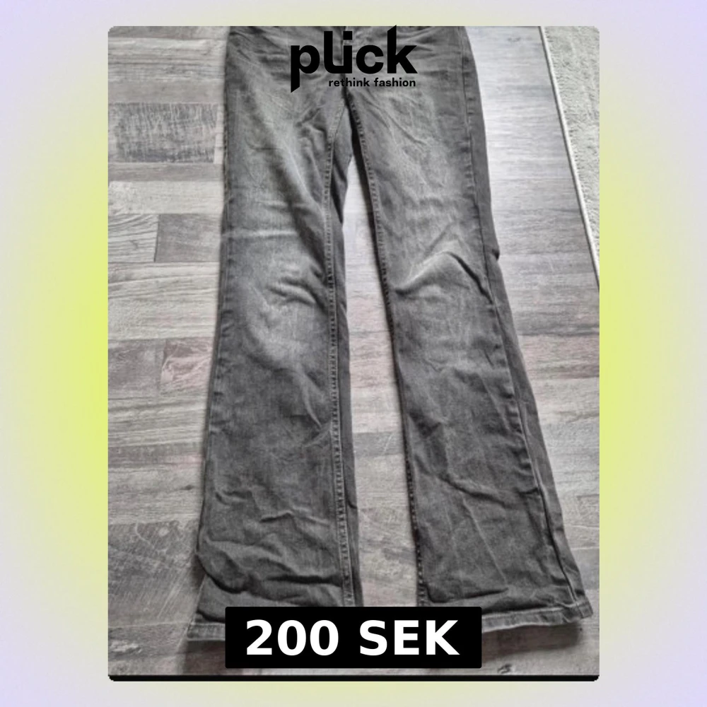 Säljer ett par grå jeans från Topshop med bootcut. Passar mig som är 170 cm lång