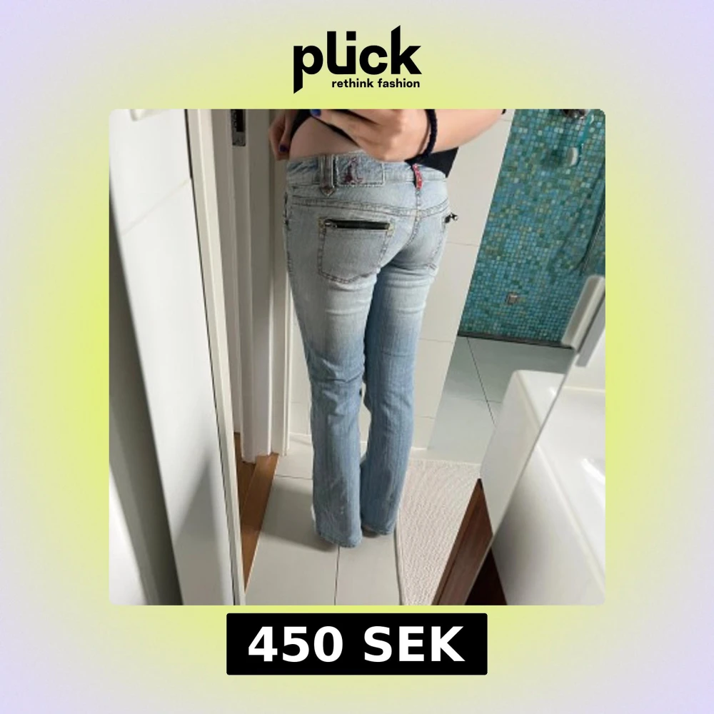 Snygga ljusblå bootcut jeans med låg midja med as coola fickor💗Storlek är ungefär en 38💗Kom privat för mått!