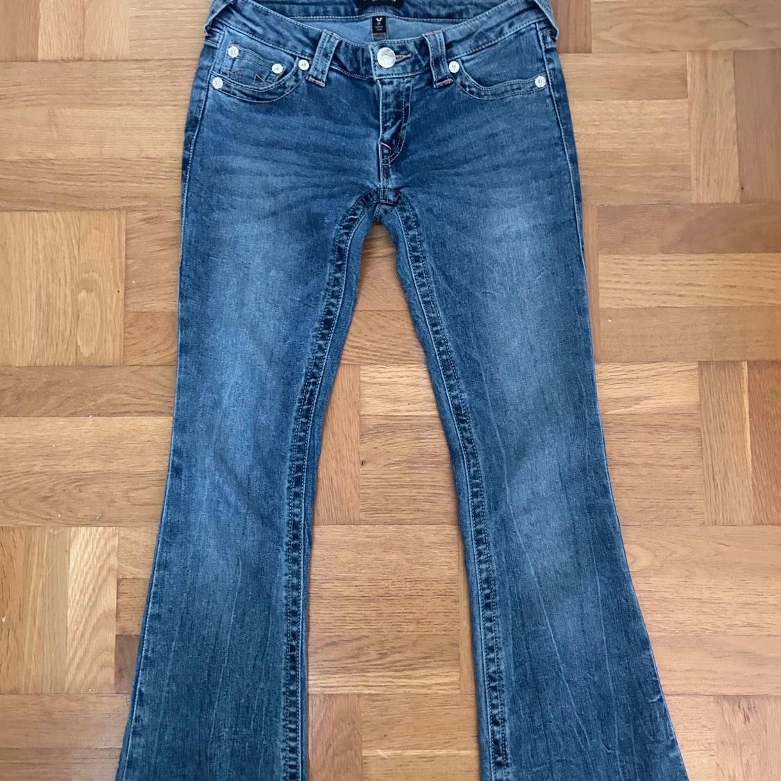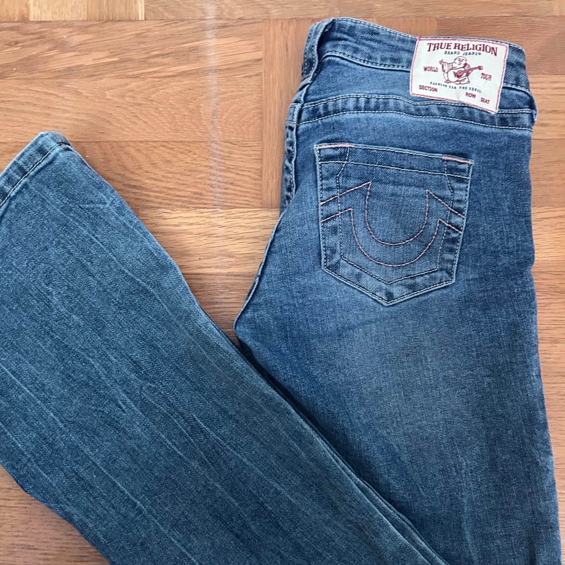 Säljer true religion jeans ultra low waist bootcut. Använd fåtal gånger och är i bra skick. Storlek 26 köpta på Nelly för 1199kr.