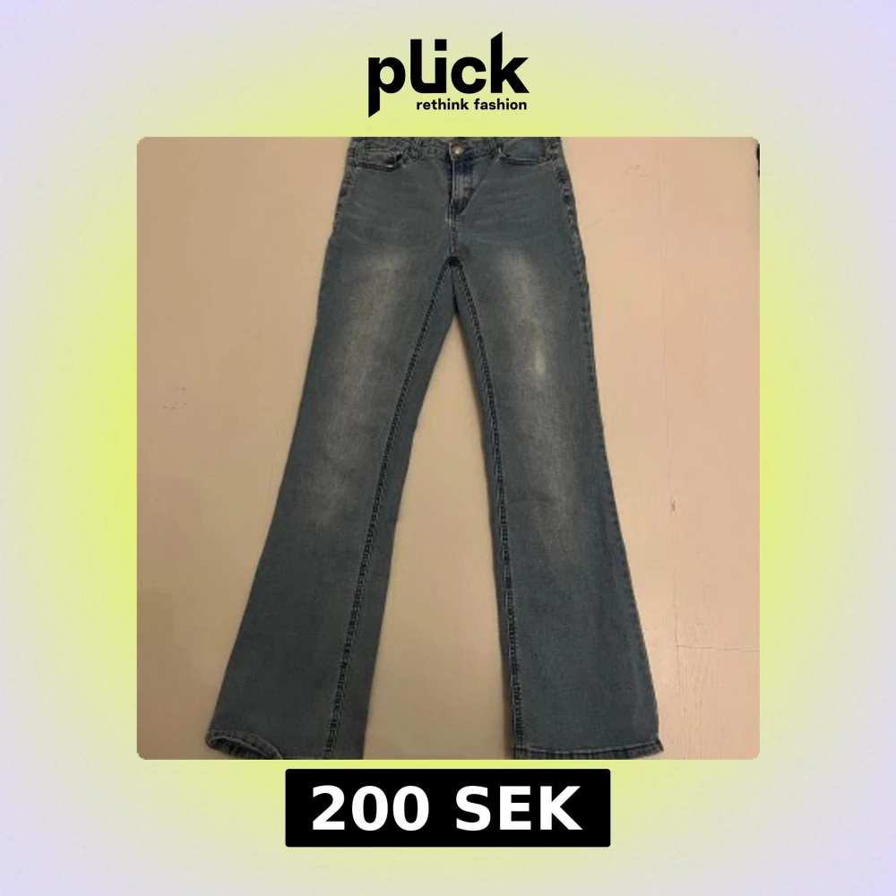 Säljer ett par klassiska blå jeans från UNIQ. De har en bootcut-stil och är tillverkade i denim. Perfekta för en avslappnad look. Med resår i midjan. Dem är low- mid weist. Pris går att diskutera!