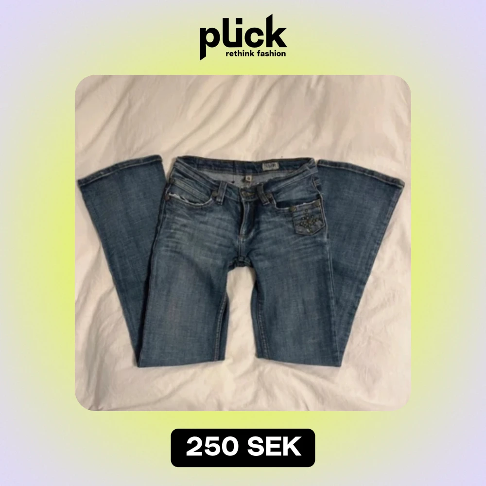 Lågmidjade jeans i utsvängd modell. Midja: 76cm innerbenslängden: 80cm