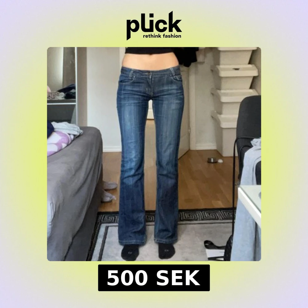 säljer mina favorit jeans från d zire, de är väldigt lågmidjade och smått utsvängda. de har inget midjemått eftersom de är så lågmidjade. 37cm höfter, 77cm innerbenslängd 17cm gren sömn. jag är 165 och de passar bra i längden