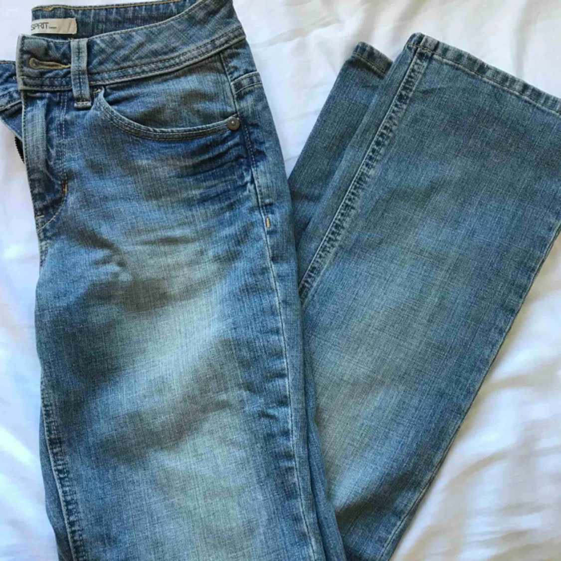 Ett par ”tvättade” blåa bootcut jeans från Esprit. Byxorna är i storlek 36 eller S. Använts ett par gånger.