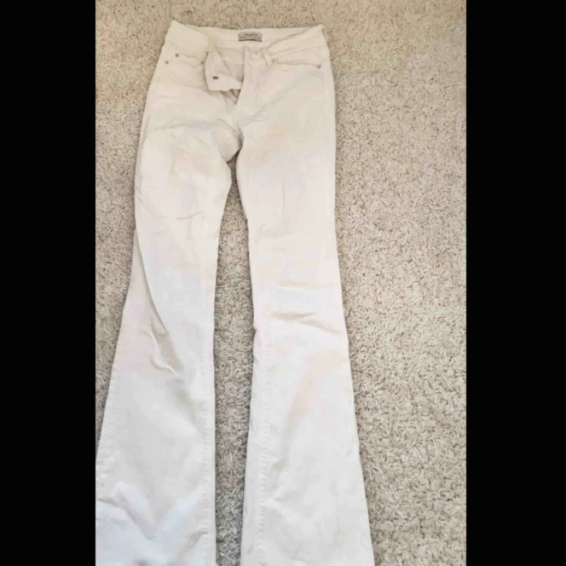 Klassiska vita bootcut jeans från Zara storlek 34, passar mig som brukar ha ca 36!