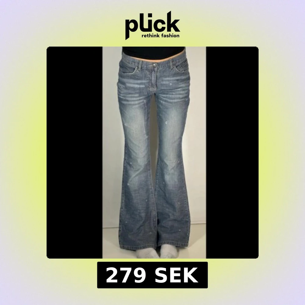 Säljer ett par boocut jeans men ändå lite loose i midjan💓Är köpa på sidan ”Tinlesell” men passade inte mig så dessa bilder är lånade. OBS!! Eftersom jeansen var för långa så är jeansen uppklippta hos skreddare, så skriv för privata bilder om de önskas:) Midja tvärs över: 39cm, Midjehöjd: 21 cm.