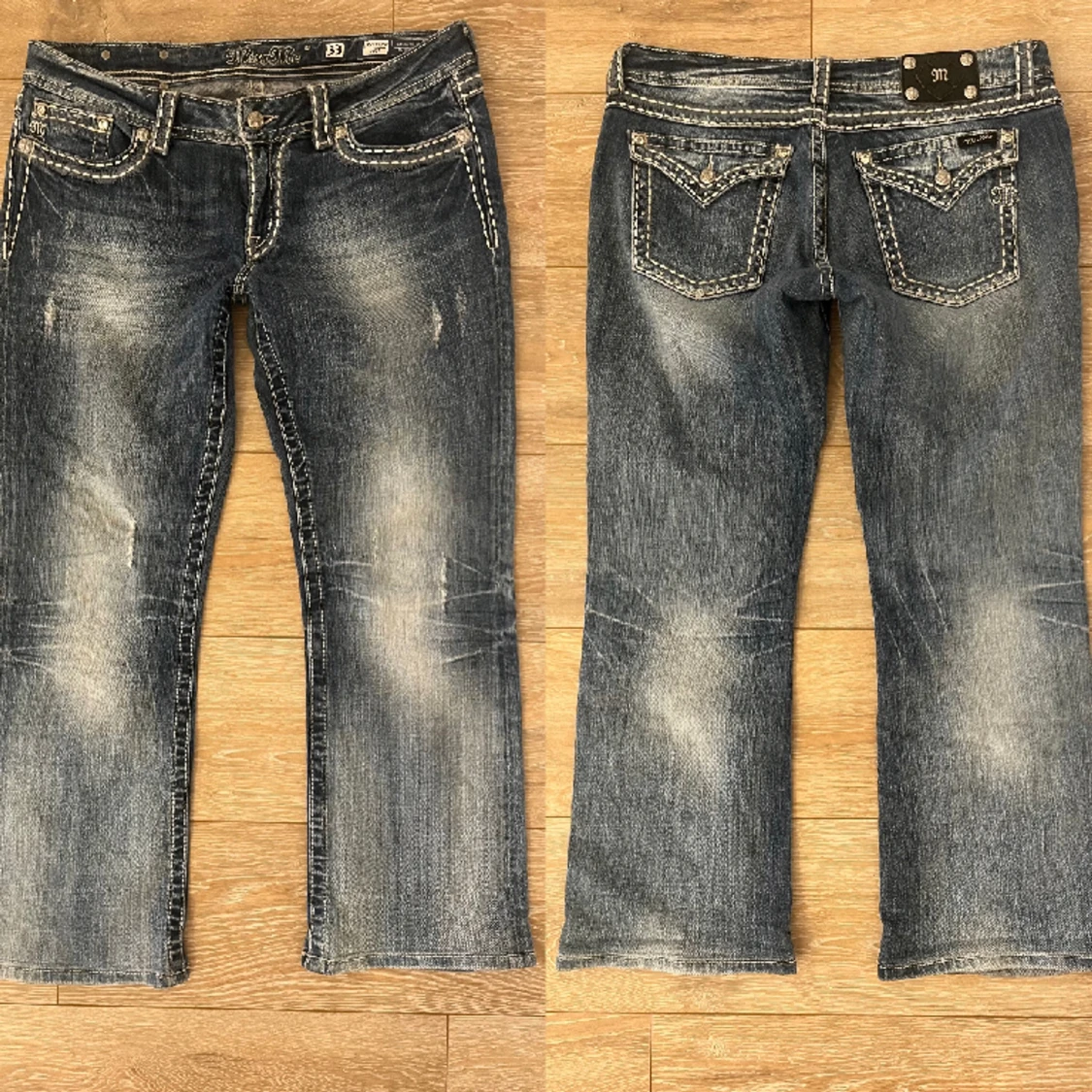 Lågmidjade bootcut miss me jeans i fint skick och utan fläckar, midjemåttet tvärs över är 46cm och Innerbenslängden är 70cm❤️tryck gärna på köp nu ✌️