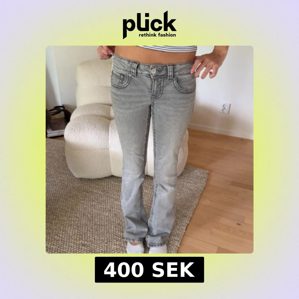 Säljer ett par grå jeans med fickor för back. Nästan aldrig använda! Skriv om ni undrar nått!