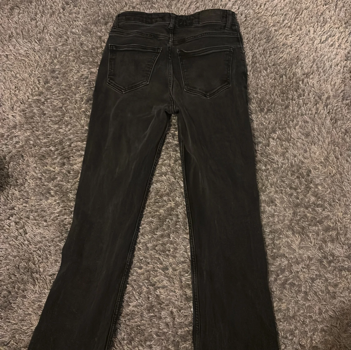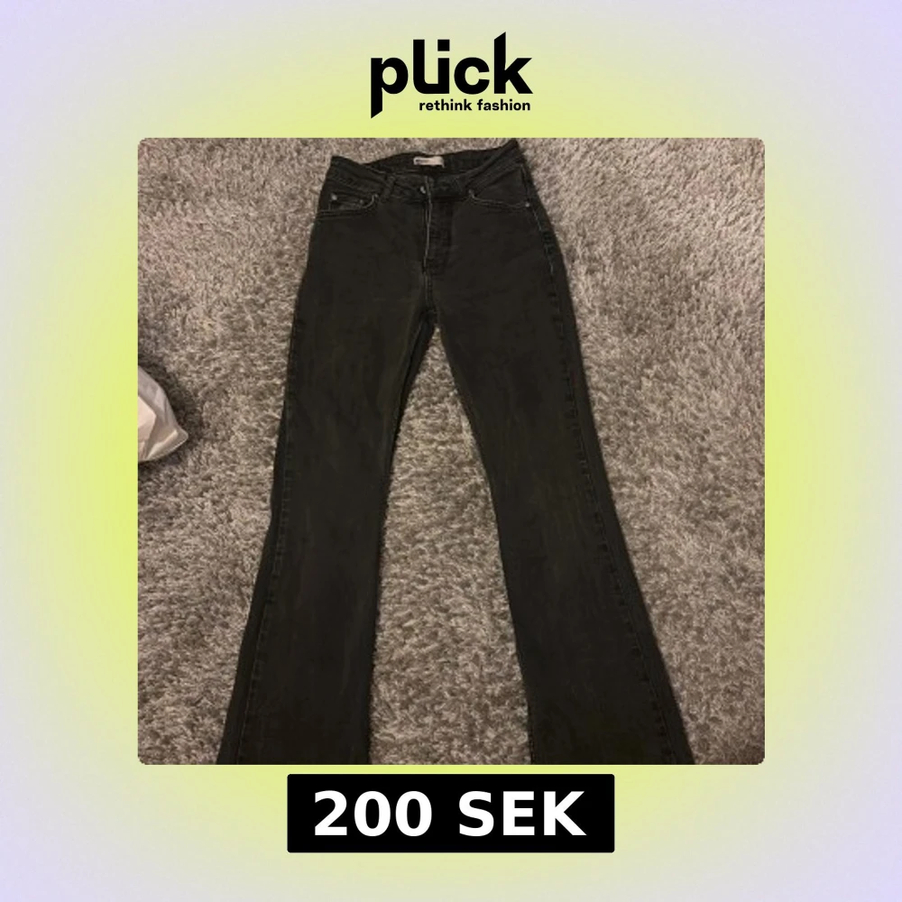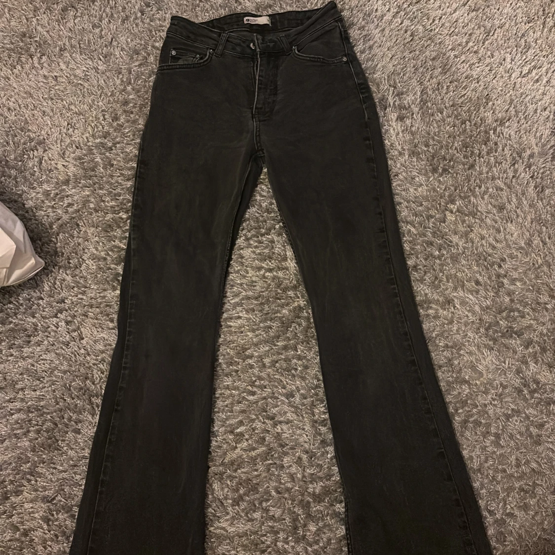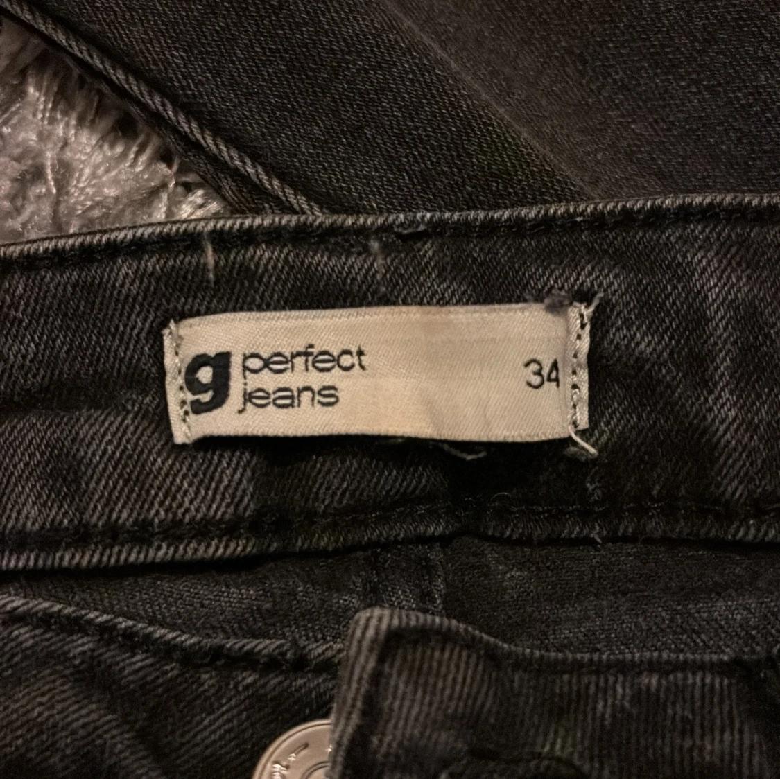 Snygga svarta jeans från Gina (Perfect Jeans), De har en ganska hög midja och en bootcut-stil. Perfekta för att matcha med olika toppar och skor.