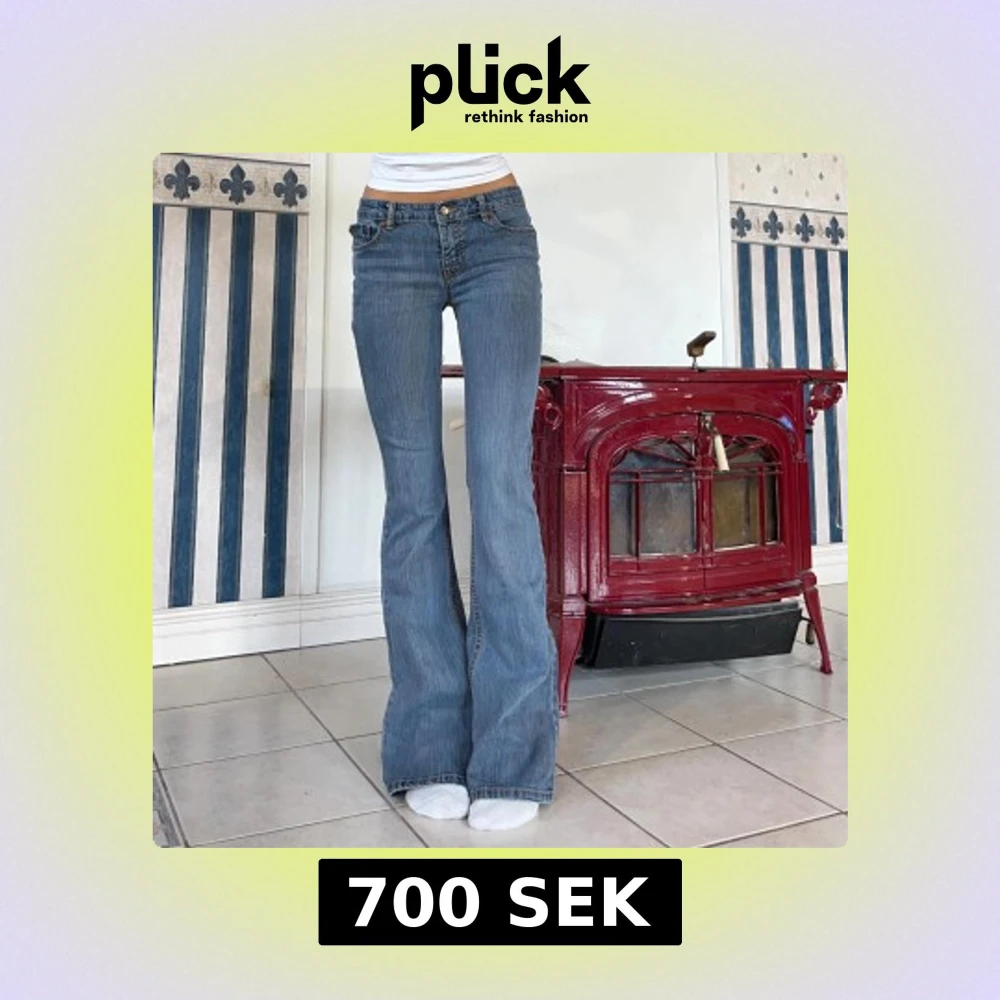 Gråa, låga jeans i bootcut💕 midjemått 76cm & innerbenslängd 83cm💕 stretchiga💕 jag är 165. Obs knappen är bytt (sista bilden)