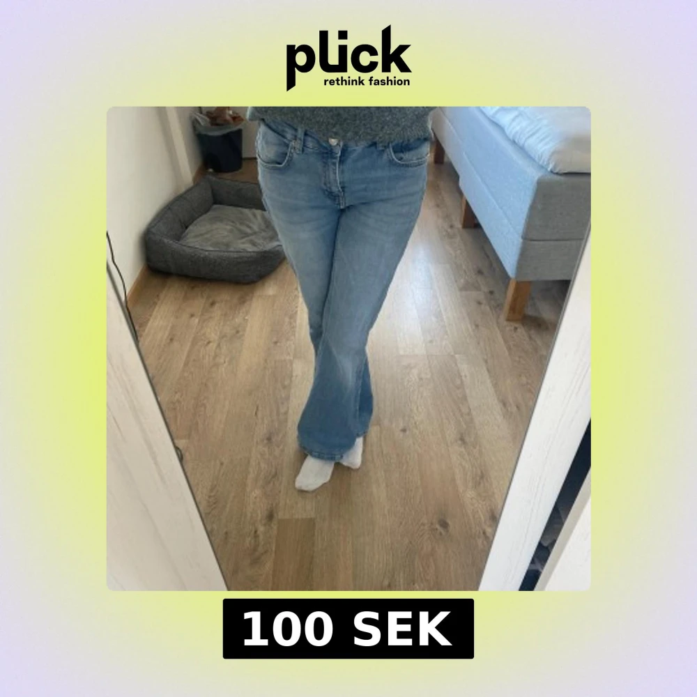 Säljer ett par snygga blå bootcut jeans från 157. De har en låg midja och klassisk femficksdesign. Säljer dessa på grund av att de har blivit för stora för mig!