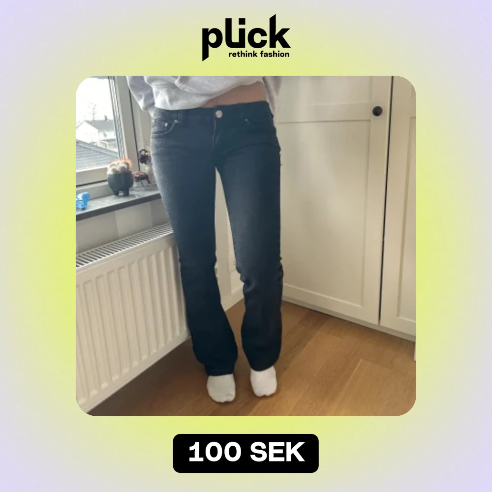 Så snygga Low waist svarta jeans från nudie jeans! Storleken är 27 w 32 L. 🖤 Midjemått: 83 (runt hela) Innerbenslängd: 80 Jag är 162 på bilden