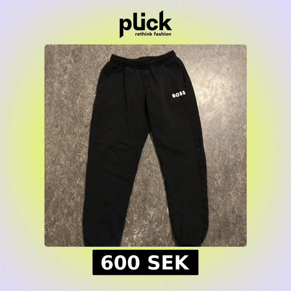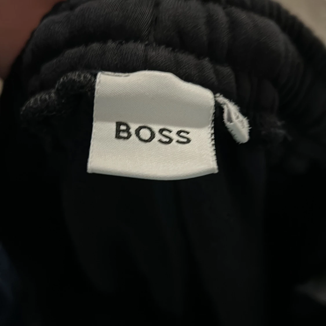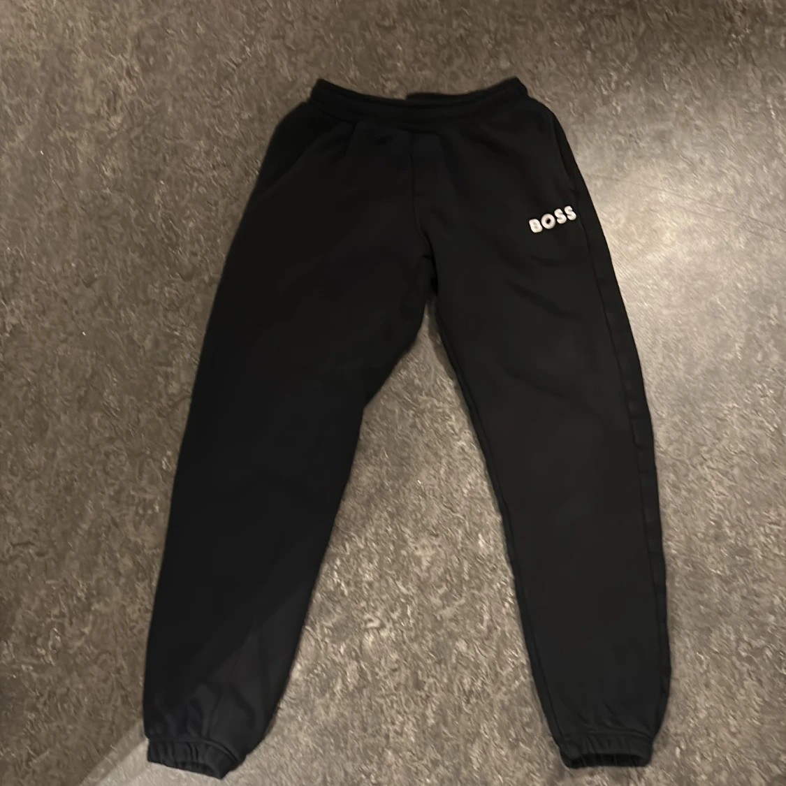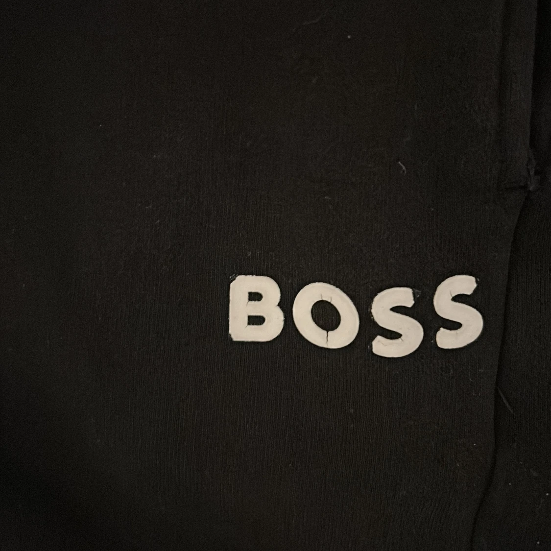 Snygga svarta mjukisbyxor från Boss med elastisk midja och muddar vid bensluten. Perfekta för en avslappnad stil. Boss-loggan är tryckt på framsidan.