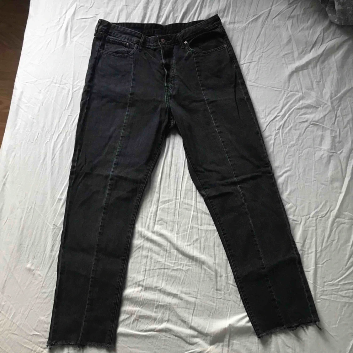 Svarta ankle vintagejeans med hög midja och rosé guld detaljer. Super coola med stygn sydda på både ram och bak sida, har ingen stretch men ändå bekväma.