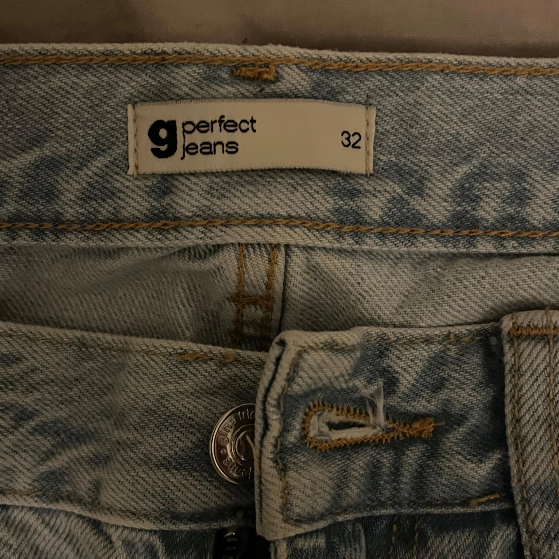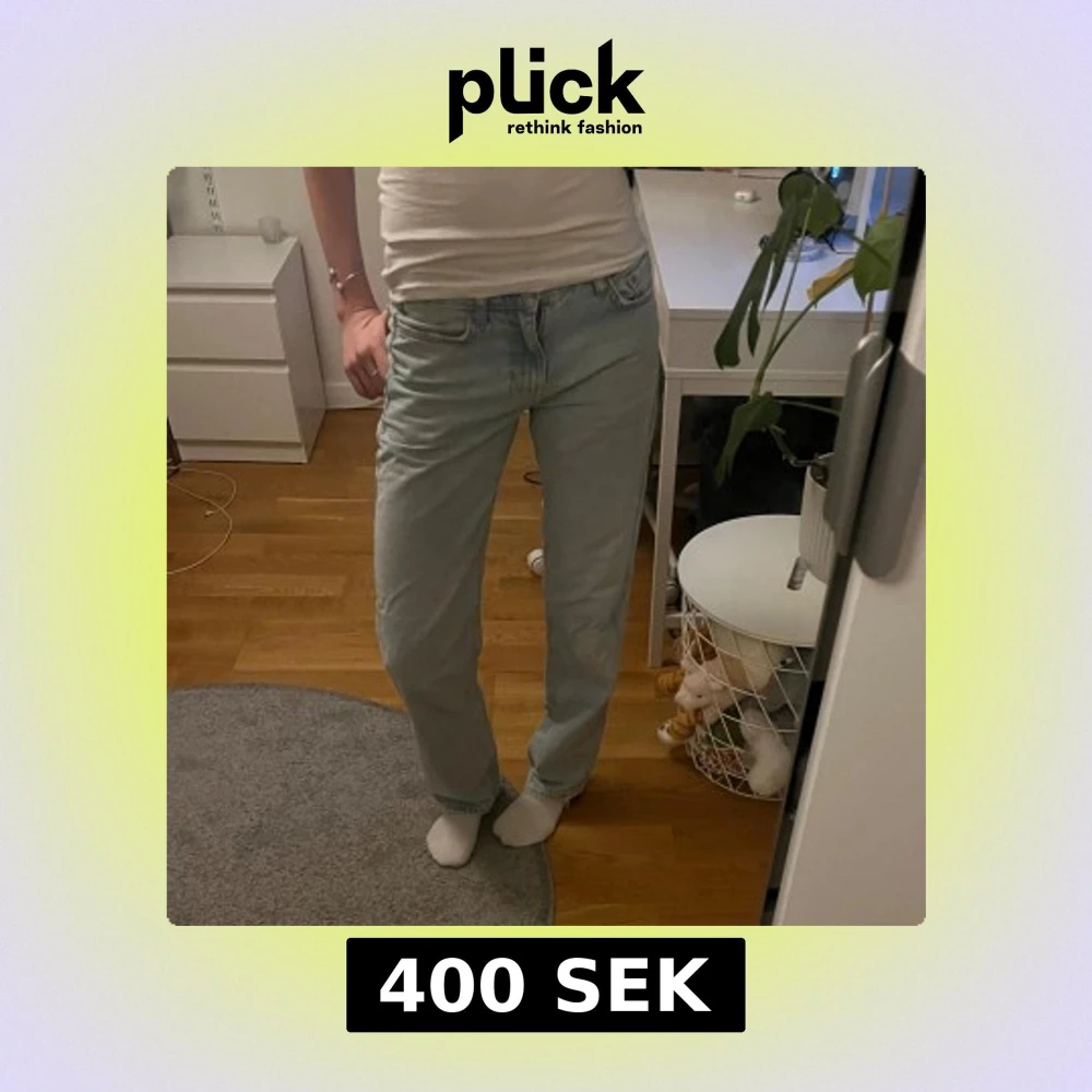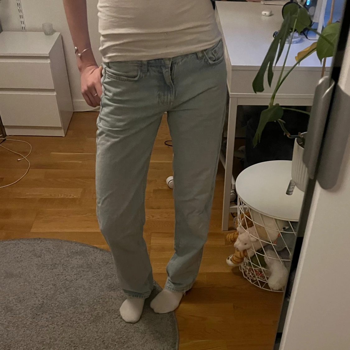Snygga ljusblå jeans från Gina med en klassisk straight passform. De har en knapp och dragkedja framtill och är perfekta för en avslappnad stil. Passar bra till både sneakers och boots. Köpta för 700 💕kontakta för sker bilder🤭
