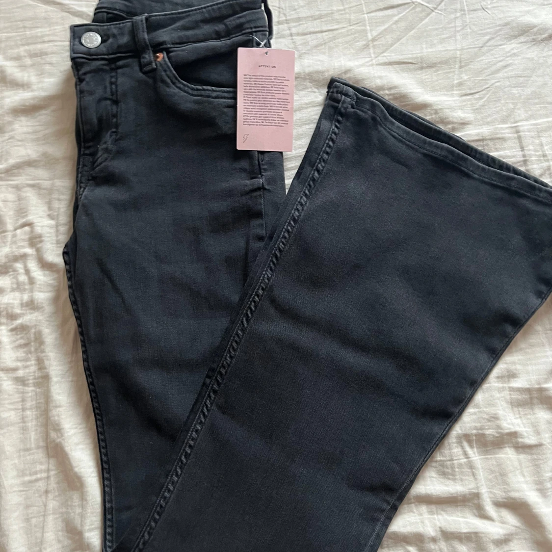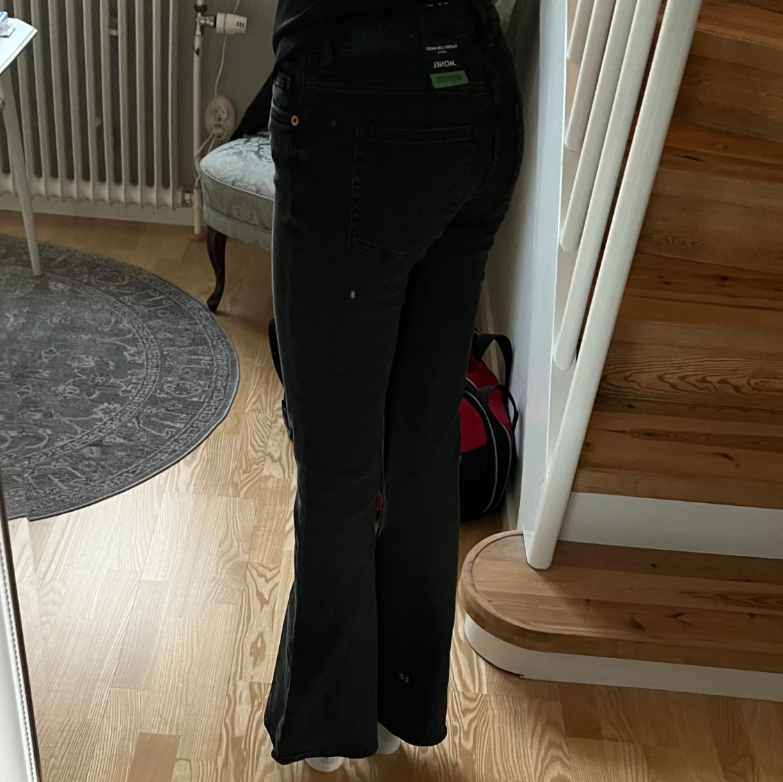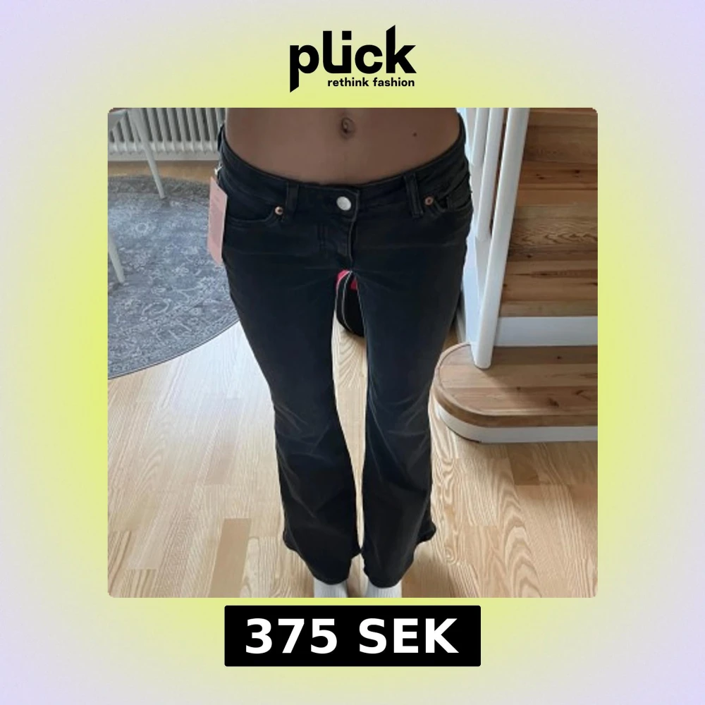 Helt oanvända och snygga svarta bootcut jeans med låg midja och klassisk femficksdesign. Säljer då de är för korta för mig. Jag är runt 173 som referens🤍