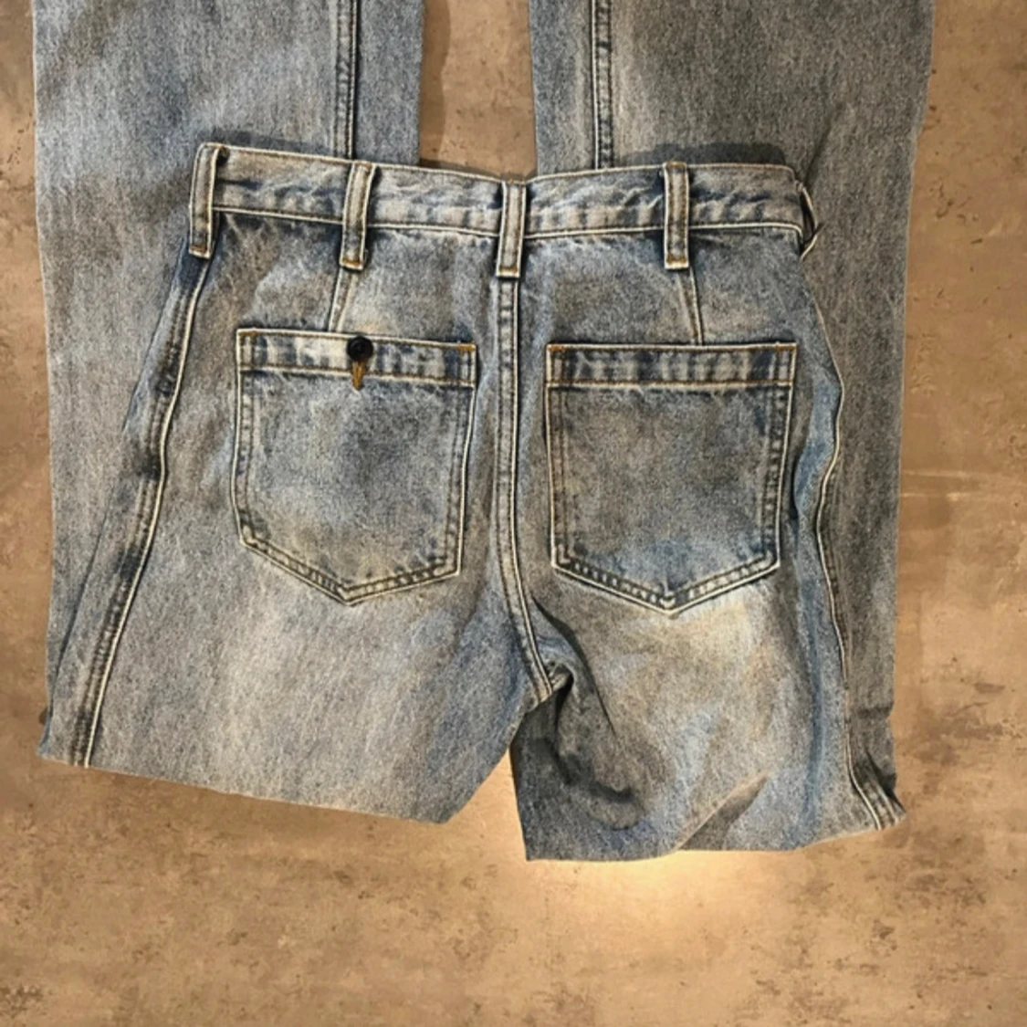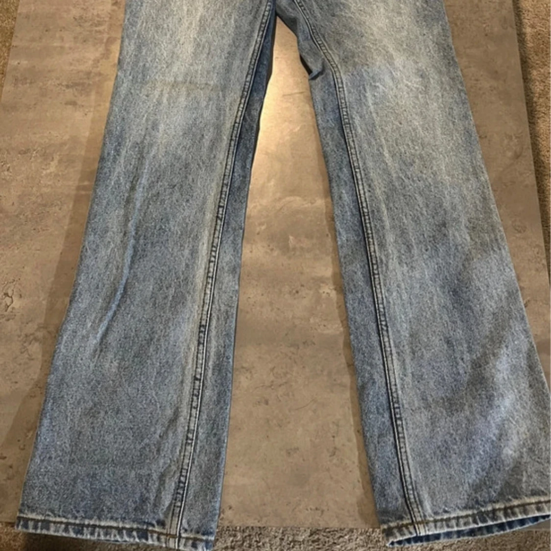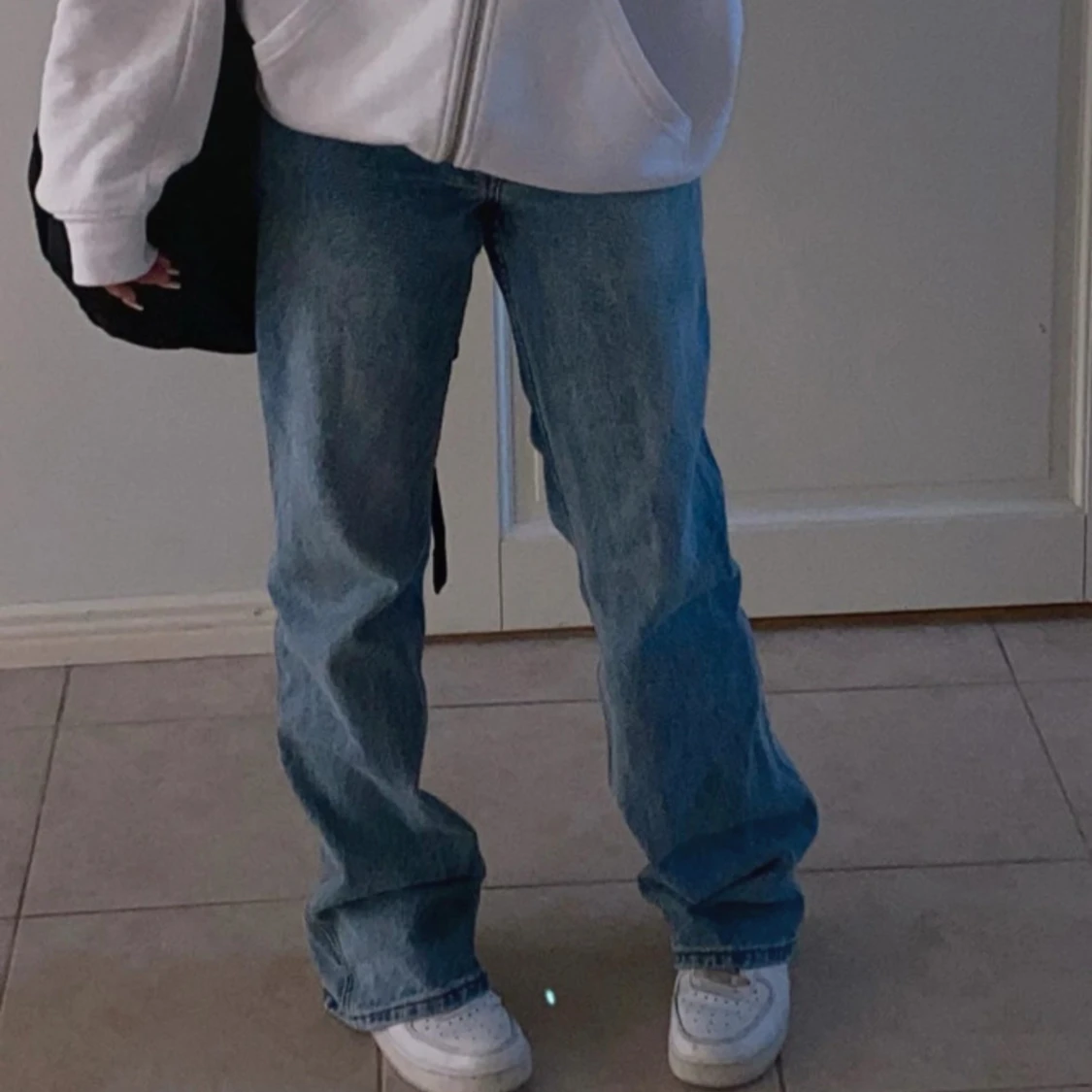 Klassiska Brandy Melville jeans i ljusblå tvätt med raka ben och femficksmodell. Jeansen har normal passform, bälteshällor och tydliga sömmar. Perfekta för dig som gillar en tidlös och avslappnad look.