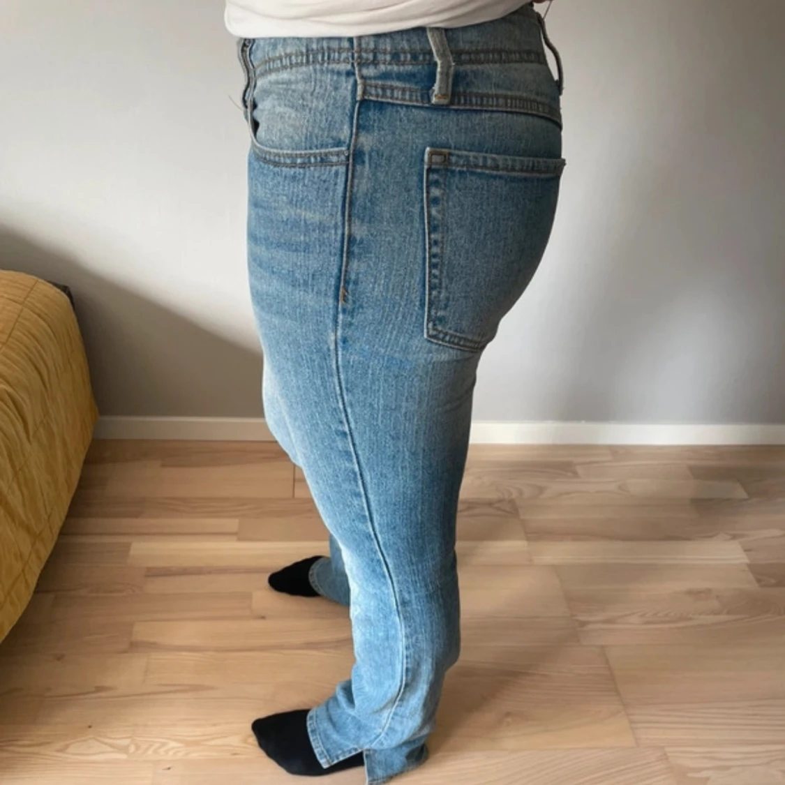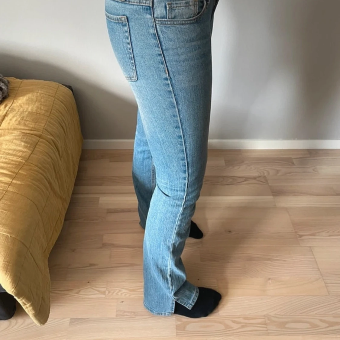 Snygga ljusblå jeans med klassisk bootcut passform och normal midja. Jeansen har fem fickor, dragkedja och knapp framtill. Skriv för mått, frågor eller prisförslag.