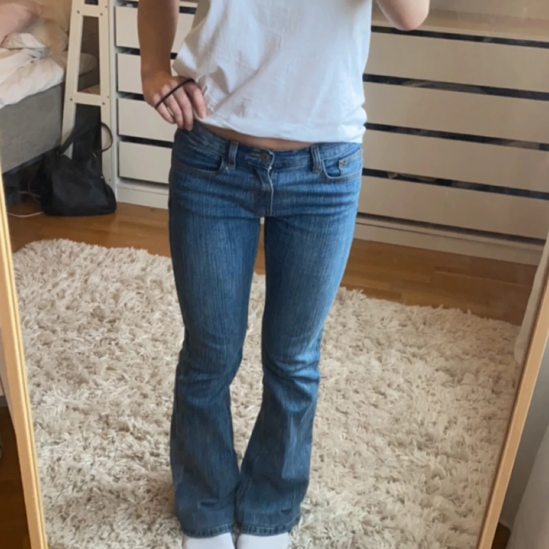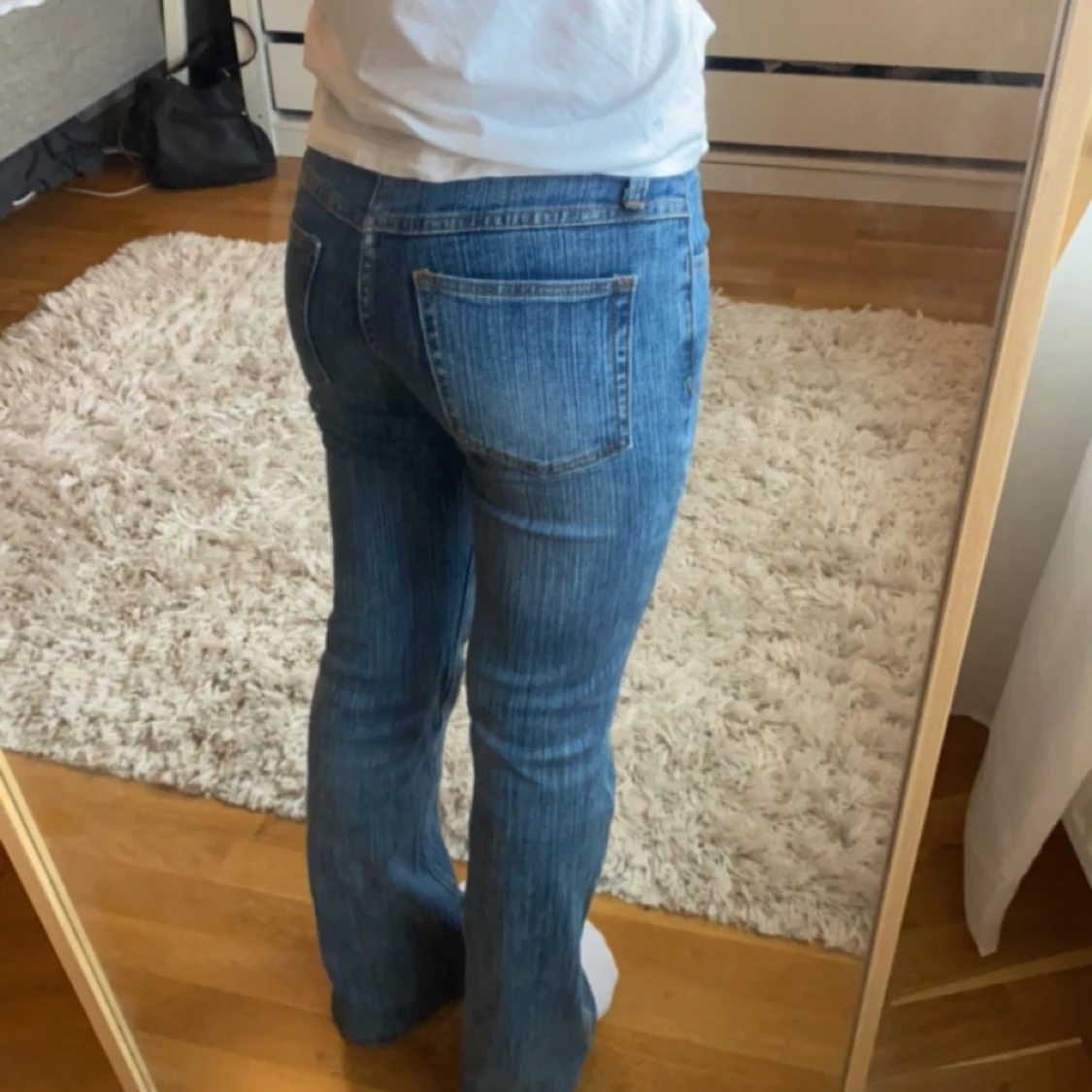 jättefina brandy jeans i nyskick som jag säljer då jag har snarlika. de är låga/mig waist & utåtsvända. uppsydda för mig som är 165, men det kan enkelt sprättas upp. stretchiga i materialet, så de passar xs-m. skriv om du har frågor eller vill ha måtten💕💕
