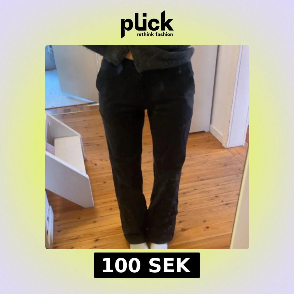 Snygga svarta byxor med en klassisk design och knappdetalj i midjan från brandy melville. Byxorna har en rak passform och är perfekta för en stilren look. De har en diskret bakficka och är tillverkade i ett bekvämt material. Skriv för fler frågor!🤍